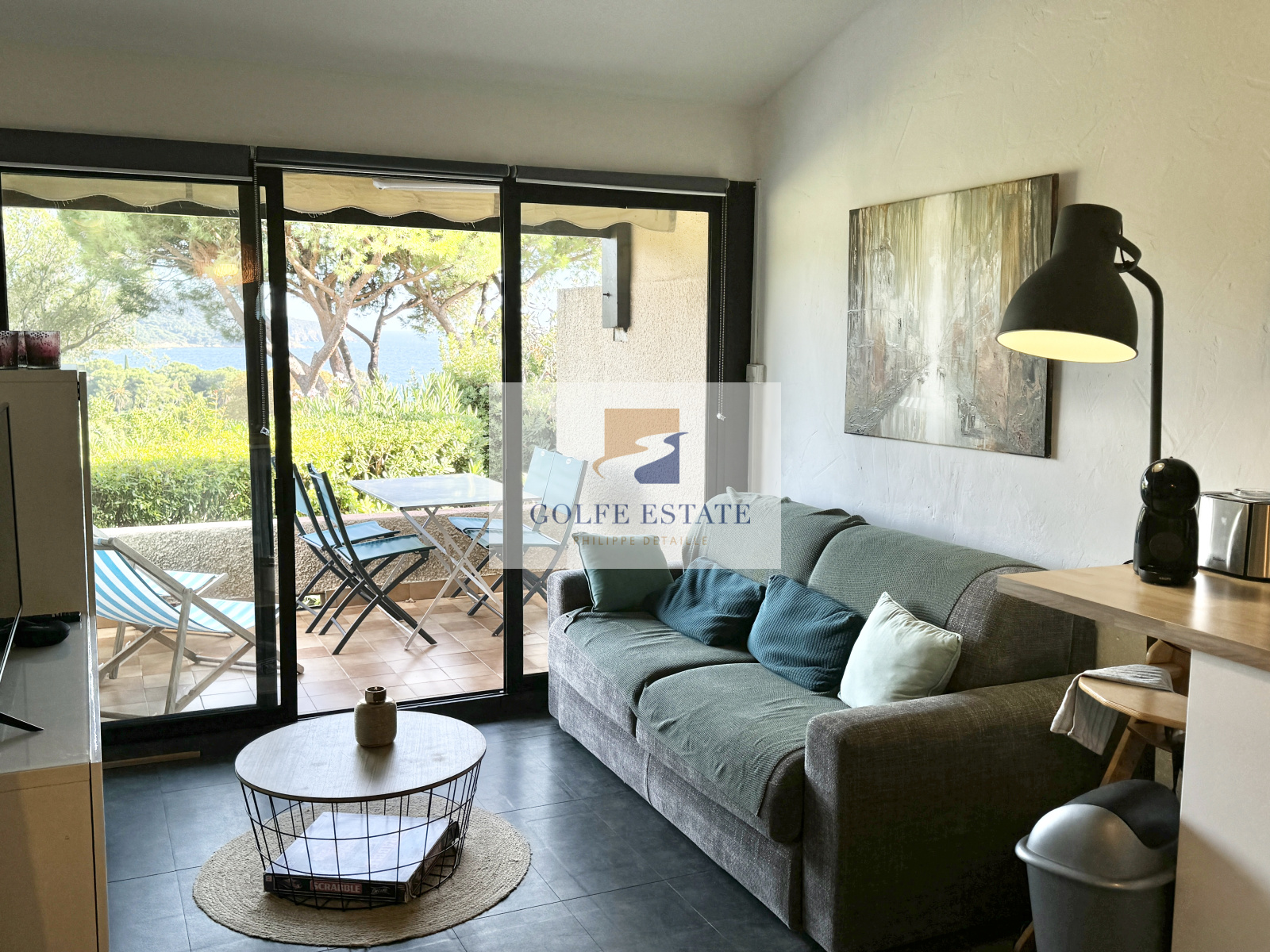 A Gigaro, dans une copropriété prisée de Sylbabelle, à deux pas des plages, cet appartement de 27 m2 profite d'une vue mer sur les vignes de la Madrague, Gigaro et le Cap lardier.