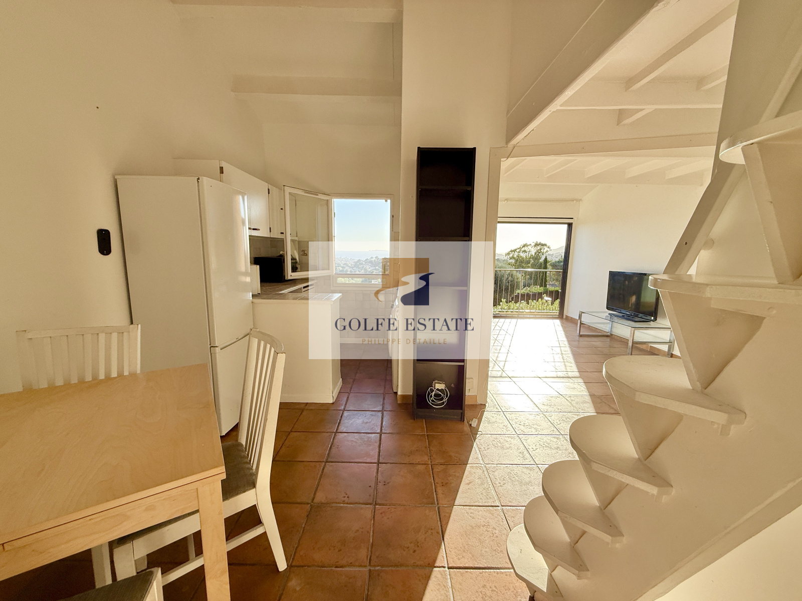 Au deuxième et dernier étage, sans mitoyenneté, dans une copropriété prisée de La Croix-Valmer, un appartement mansardé composé d'une entrée sur séjour, d'une cuisine ouverte et son coin repas, d'une chambre avec une salle d'eau, d'un WC indépendant et deux mezzanines offrant 2 couchages d'appoints supplémentaires. Le bien profite d'une petite terrasse couverte, et d'une place de parking.