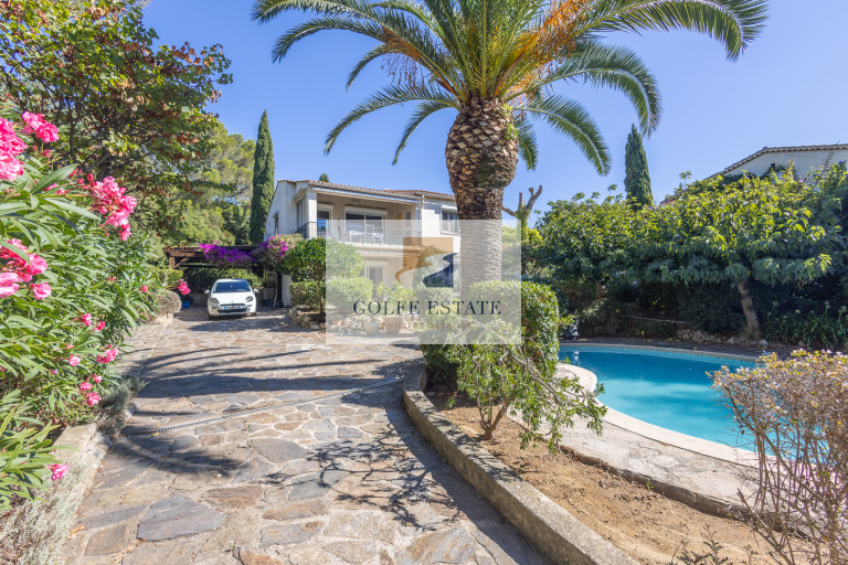 EXCLUSIVITE: Dans un lotissement prisé de la Croix-Valmer, idéalement située, proche des plages et du village, cette maison divisée en 2 appartements communiquants profite d'un très beau jardin arboré avec piscine. Au rez-de-chaussée, 1 entrée sur séjour avec cuisine ouverte et accès terrasse, 1 grande buanderie, 1 chambre, 1 salle d'eau avec WC et une autre chambre d'appoint. A l'étage, 1 entrée sur séjour avec cuisine ouverte et accès à la terrasse profitant d'une vue dégagée avec aperçu mer sur Cavalaire et l'Ile du Levant et un WC indépendant. Une grande chambre en suite avec salle d'eau et WC suspendu. Un abri voiture complète le descriptif. Il existe de nombreuses possibilités d'agencement intérieur pour augmenter le nombre de chambres et de salles d'eau. Un très beau potentiel! A visiter absolument!