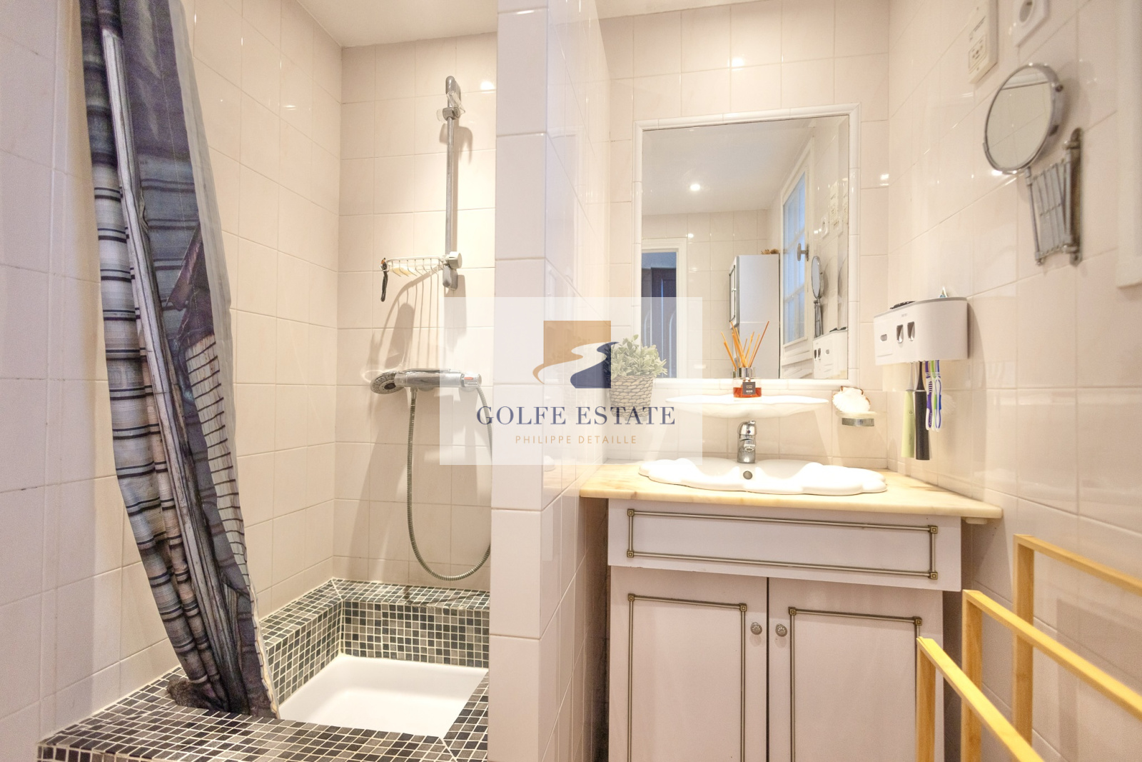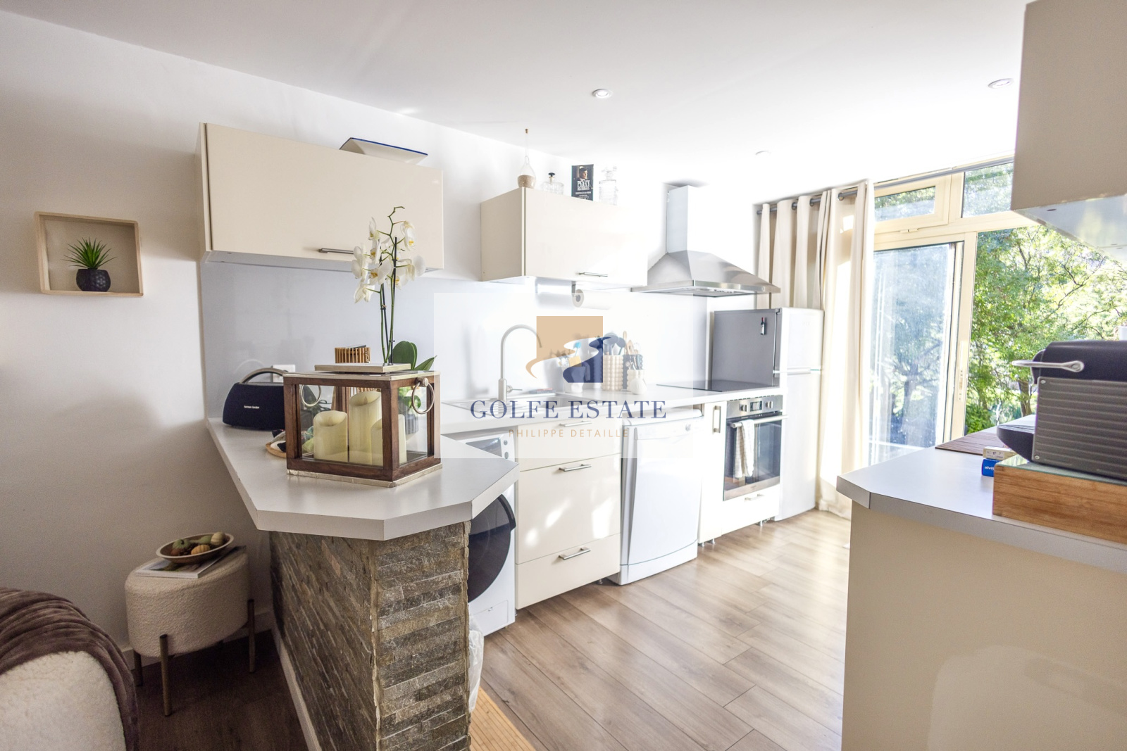 Au rez-de-jardin, deux appartements : Le premier, entièrement rénové en 2015, se compose d'une entrée sur une cuisine ouverte sur séjour, une salle d'eau avec WC et une grande chambre avec placard. ( climatisation réversible gainable).