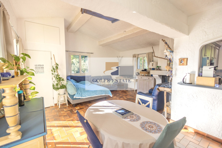 Dans un quartier prisé de la commune, au calme, cette maison d'environ 156 m2 divisée en 1 partie principale (57 m2) et 2 grands appartements de 49 et 50 m2, a été édifiée sur un terrain de 1 600m2 en 1976. Au 1er étage, appartement principal composé d'une entrée sur une veranda, une salle d'eau, une chambre, un séjour avec cheminée à insert, une cuisine semi-ouverte, et un WC séparé. Appartement à rénover et non climatisé.