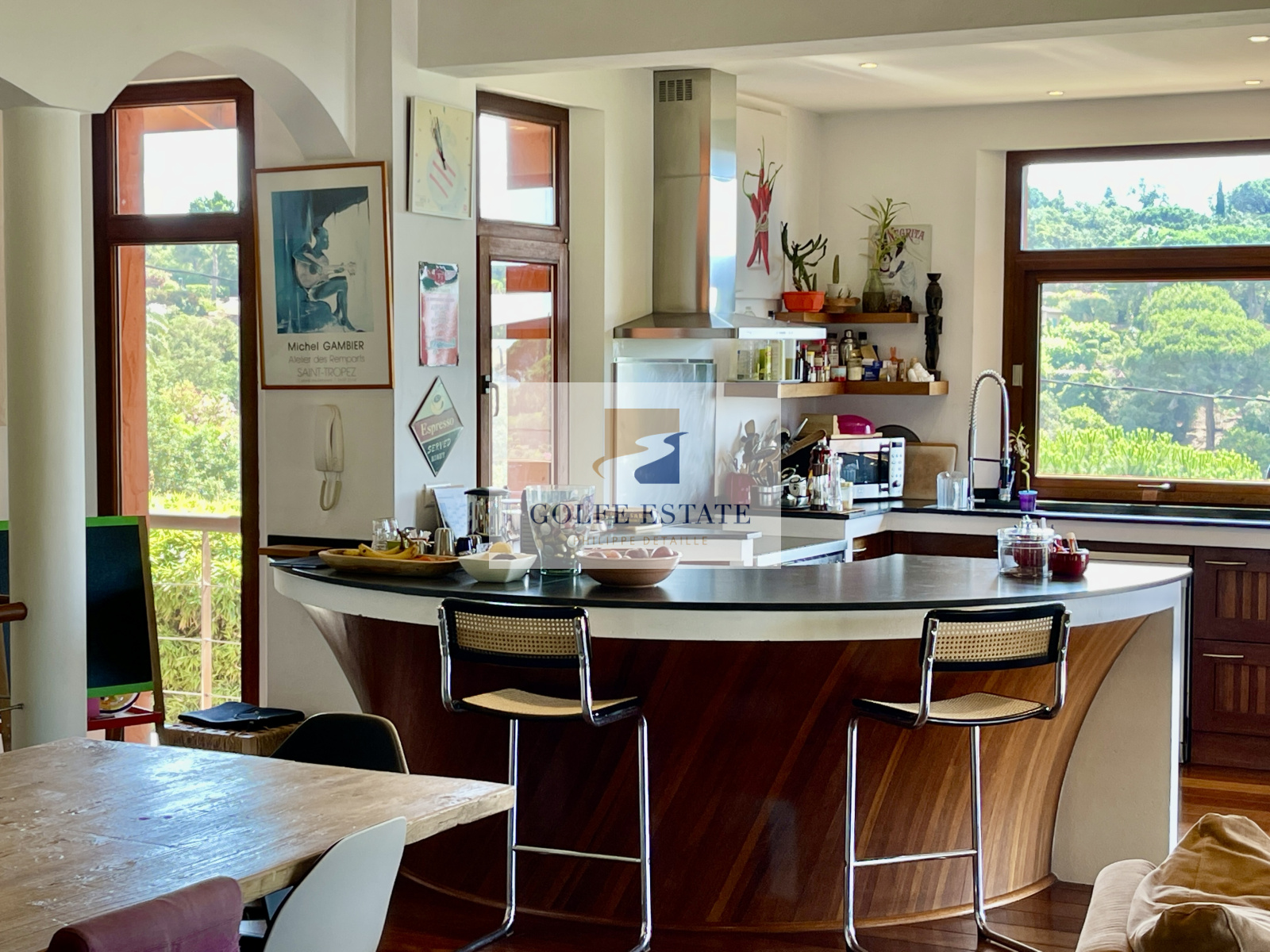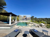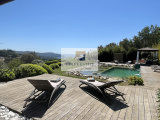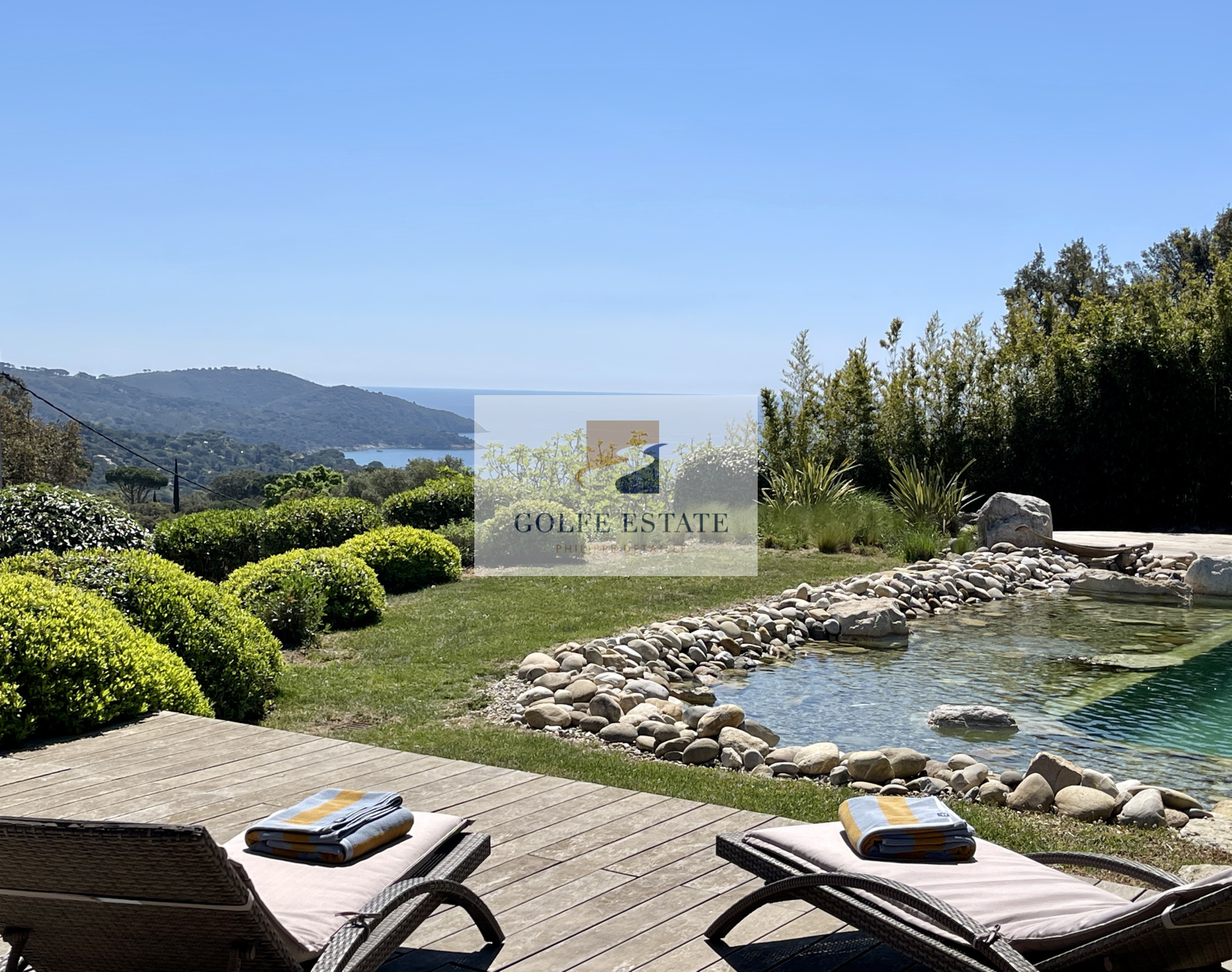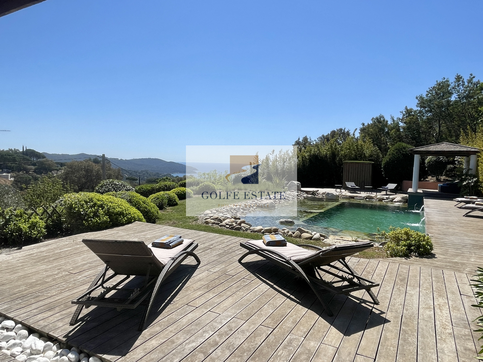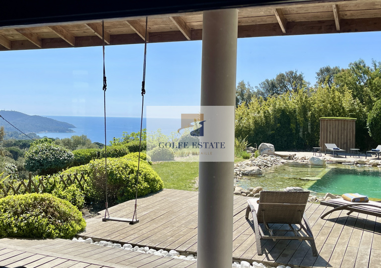 Au-dessus de Gigaro, à la Croix-Valmer, villa de qualité de 2004 à vendre disposant de 4 chambres en suite et d'une grande terrasse couverte agréable et très bien exposée. Elle offre 170m² d'habitable et se constitue d'un coin séjour cuisine de 60m², un espace cuisine ouvert sur le séjour et 4 chambres en suite dont une indépendante. Toutes les pièces sont climatisées. C'est un emplacement N°1 avec un accès rapide à la plage de Gigaro. L'environnement est magique et très calme. Le terrain de 1650m² accueil une belle piscine avec une plage exotique et un très beau jardin paysagé et luxuriant, véritable balcon sur une vue mer sur Gigaro et le Cap Lardier. Cette maison vous fait bénéficier d'un grand garage avec dépendances. Possibilité d'une 5ème chambre sous réserve de l'obtention d'une autorisation d'urbanisme.Forage pour le jardin. Le prix de vente s'élève à 2 490 000 euros.