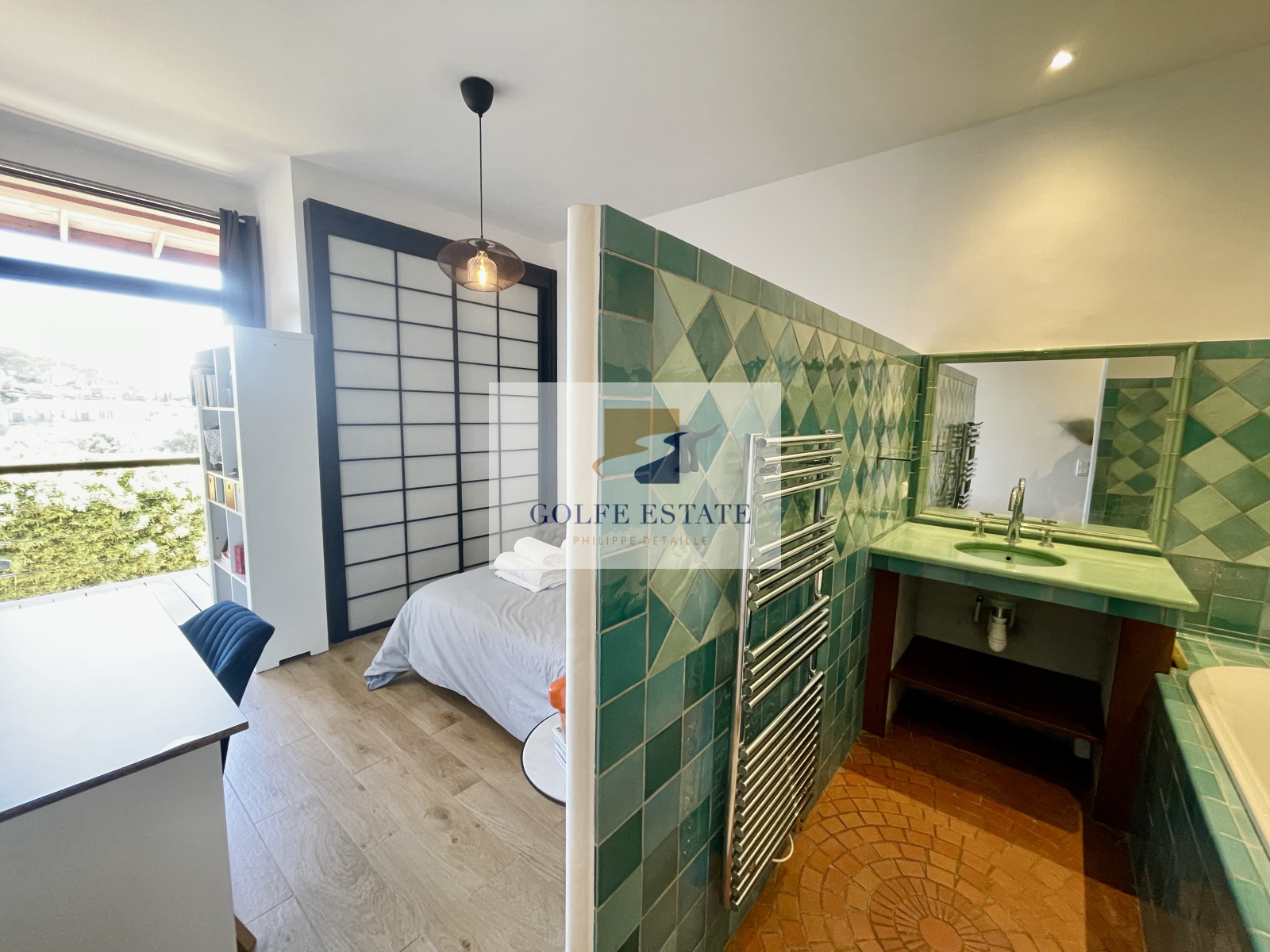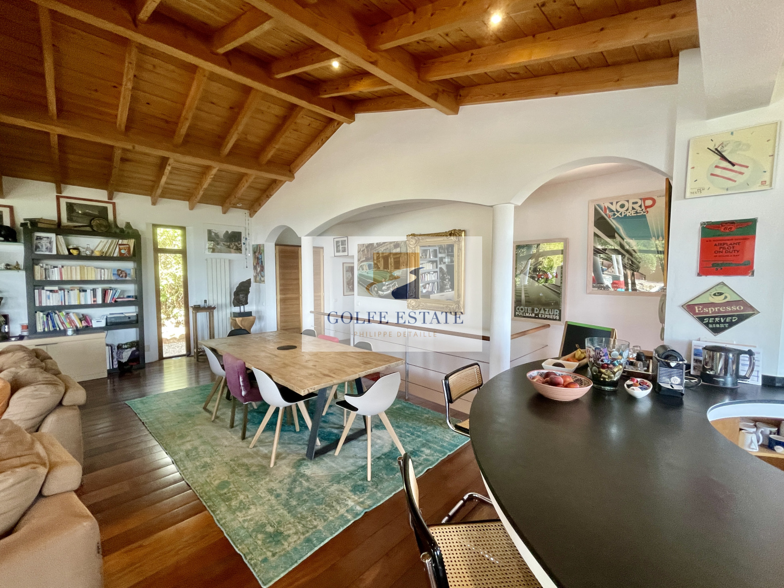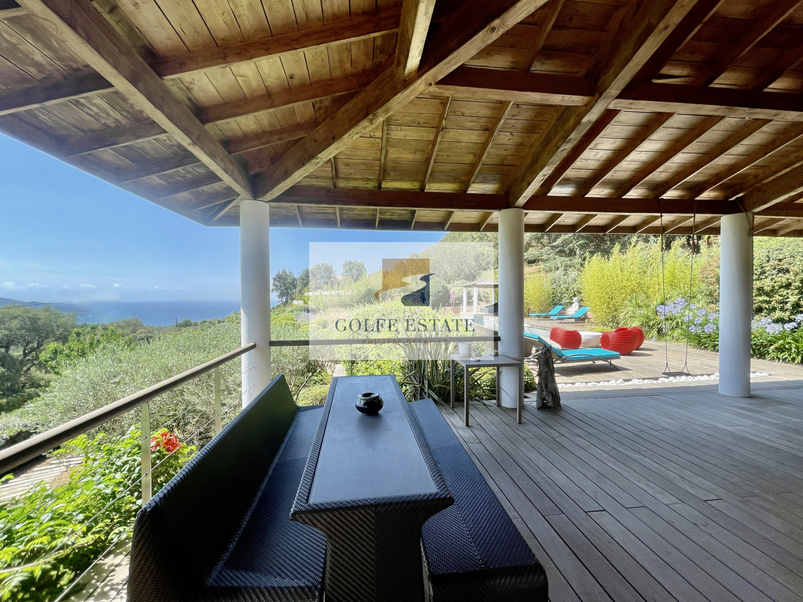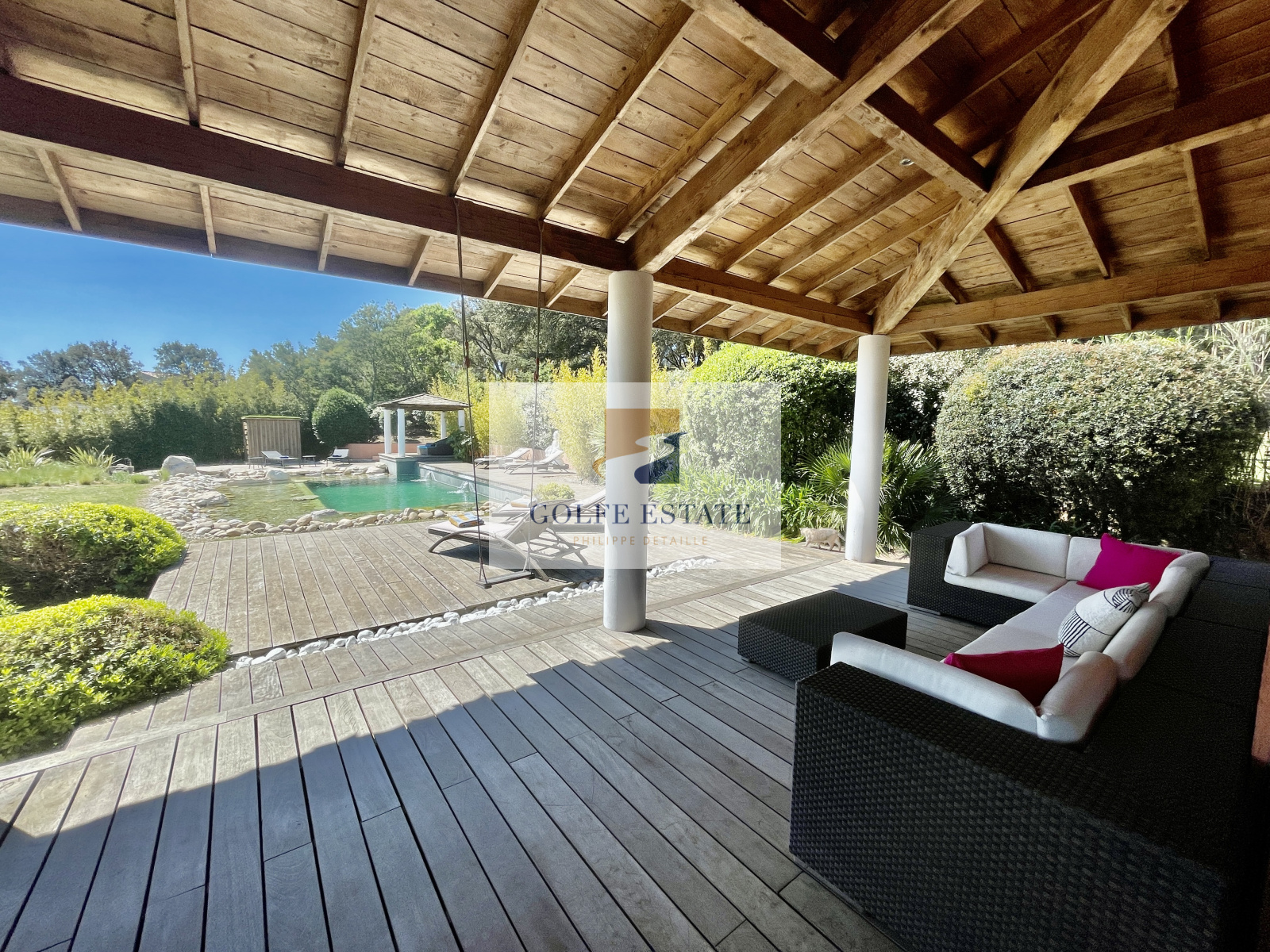 Au-dessus de Gigaro, à la Croix-Valmer, villa de qualité de 2004 à vendre disposant de 4 chambres en suite et d'une grande terrasse couverte agréable et très bien exposée. Elle offre 170m² d'habitable et se constitue d'un coin séjour cuisine de 60m², un espace cuisine ouvert sur le séjour et 4 chambres en suite dont une indépendante. Toutes les pièces sont climatisées. C'est un emplacement N°1 avec un accès rapide à la plage de Gigaro. L'environnement est magique et très calme. Le terrain de 1650m² accueil une belle piscine avec une plage exotique et un très beau jardin paysagé et luxuriant, véritable balcon sur une vue mer sur Gigaro et le Cap Lardier. Cette maison vous fait bénéficier d'un grand garage avec dépendances. Possibilité d'une 5ème chambre sous réserve de l'obtention d'une autorisation d'urbanisme.Forage pour le jardin. Le prix de vente s'élève à 2 490 000 euros.