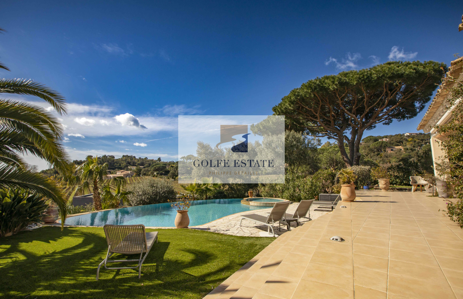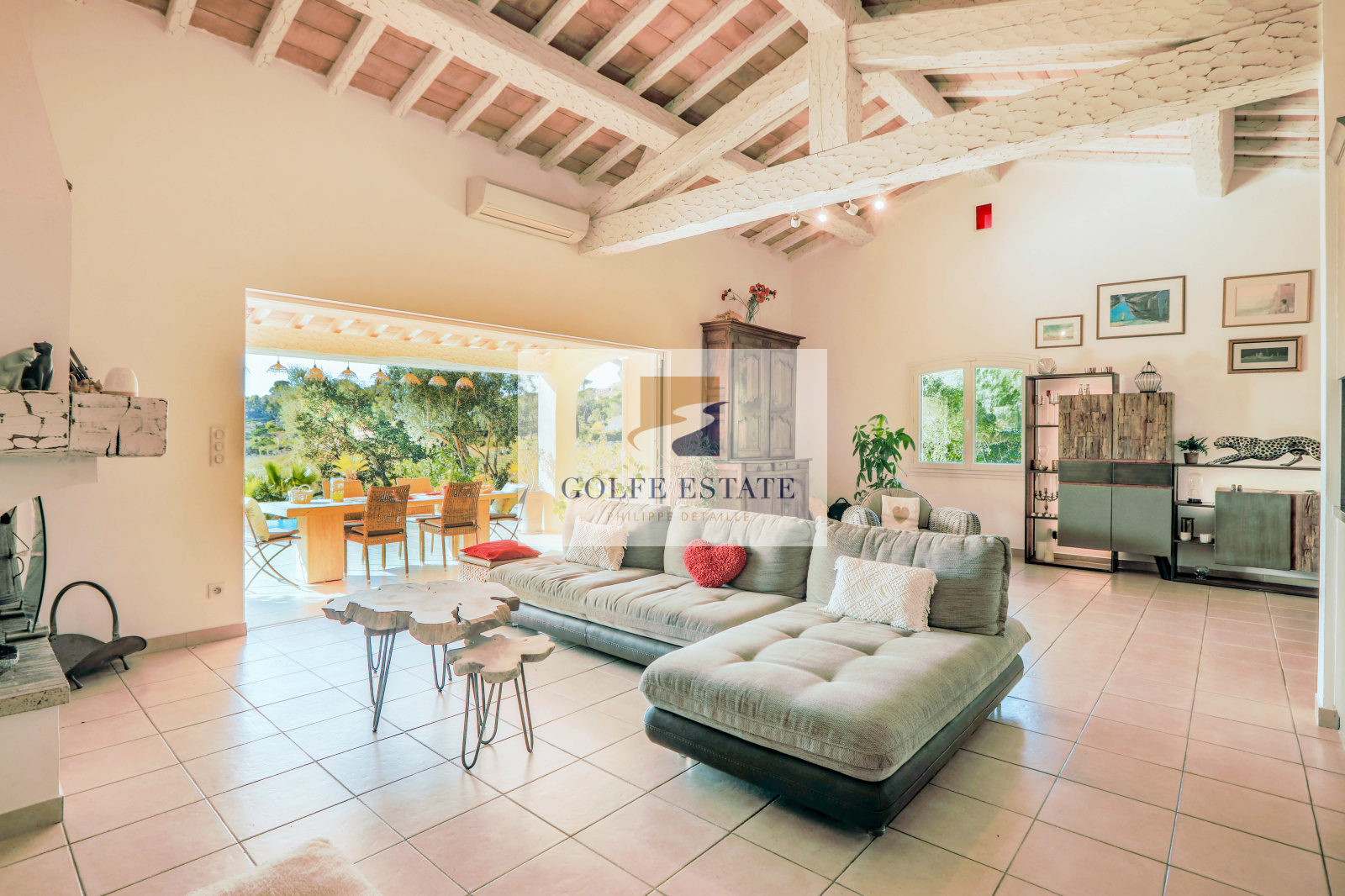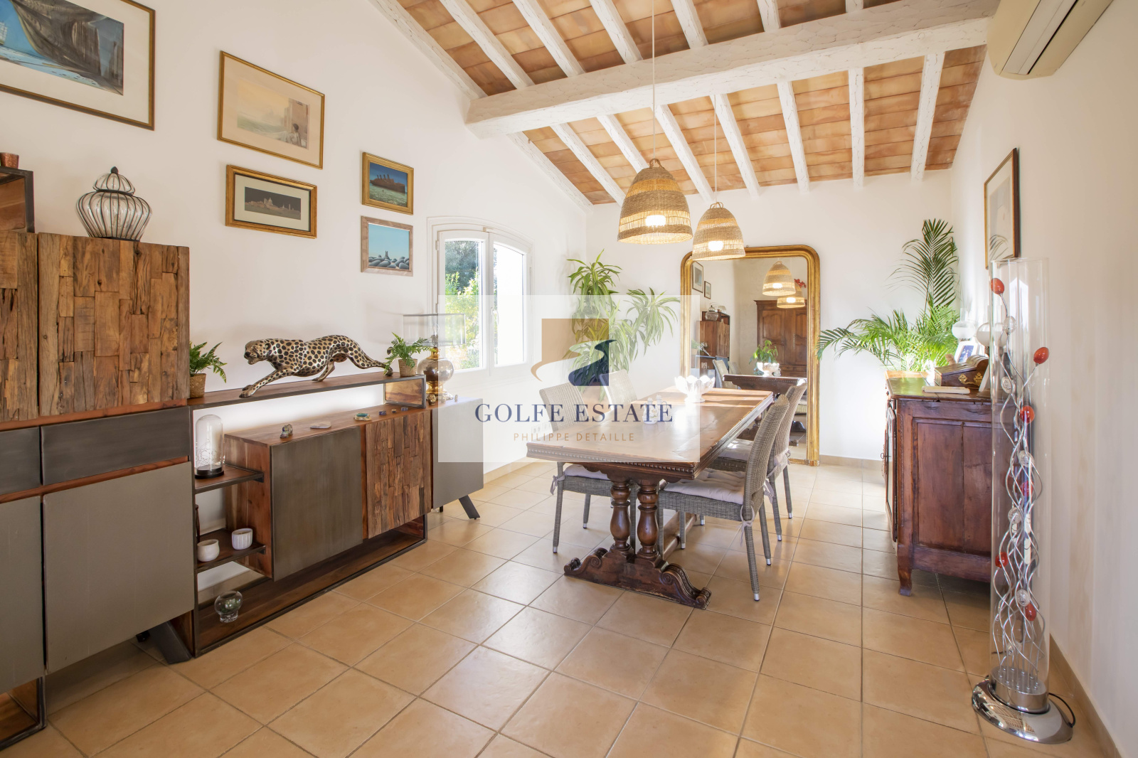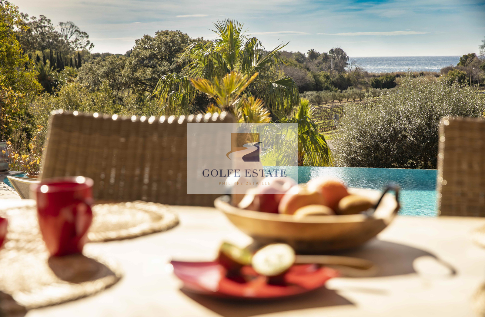 A Gigaro, avec accès à pied à la plage (500 m) et vue mer sur les vignes de la Madrague et la plage de Gigaro, villa pleine de charme entièrement rénovée en 2011 d'environ 175 m2 de surface de plancher. Sous réserve d'obtention d'un permis de construire, possibilité d'agrandir de 1 à 2 chambres supplémentaires en rez-de-jardin. Edifiée sur un très beau terrain paysagé de 1865 m2, cette villa aux volumes généreux, offre un vaste séjour / salle à manger / cuisine ouverte de plus de 63 m2! Une invitation aux réunions familiales et soirées entre amis! Au RDC une entrée accueillante donne accès au séjour, à la buanderie et à l'espace couchage avec un WC invités, une salle de bains et 2 chambres donnant sur terrasse et vue mer. Au premier étage se trouve une chambre parentale en suite avec sa salle de bains et son WC. Une 4ème chambre, un dressing sur couloir, une salle d'eau avec WC complètent l'agencement. Les 2 chambres du 1er étage ont accès à une terrasse tropézienne. La villa a le confort d'une maison à l'année (climatisation réversible dans toutes les chambres). Elle bénéficie aussi d'un grand garage indépendant en pierres sèches avec un atelier / rangement , d'un terrain de pétanque convivial et d'une piscine à débordement en forme libre. La propriété est entièrement clôturée et ne souffre d'aucun vis à vis.