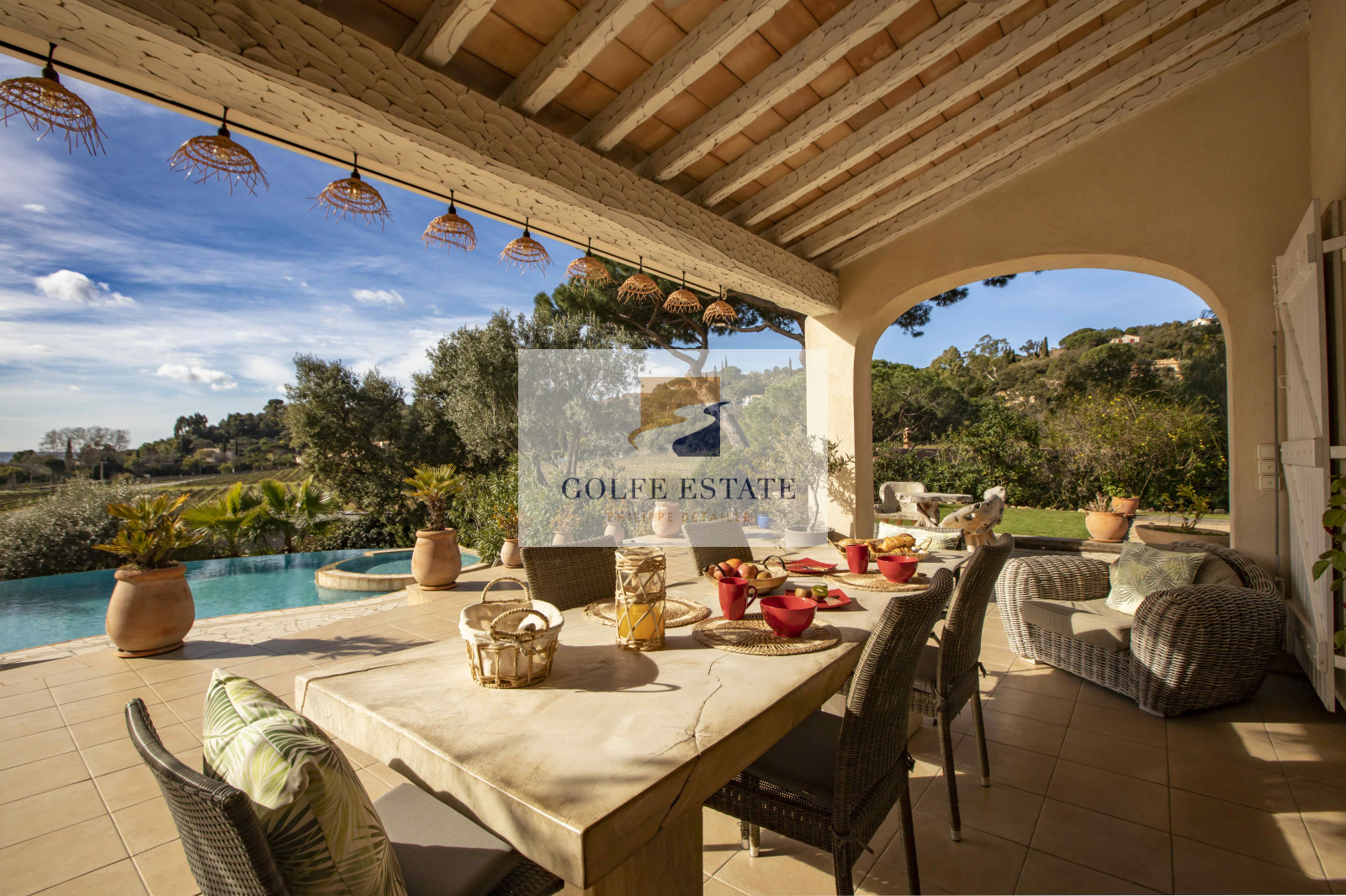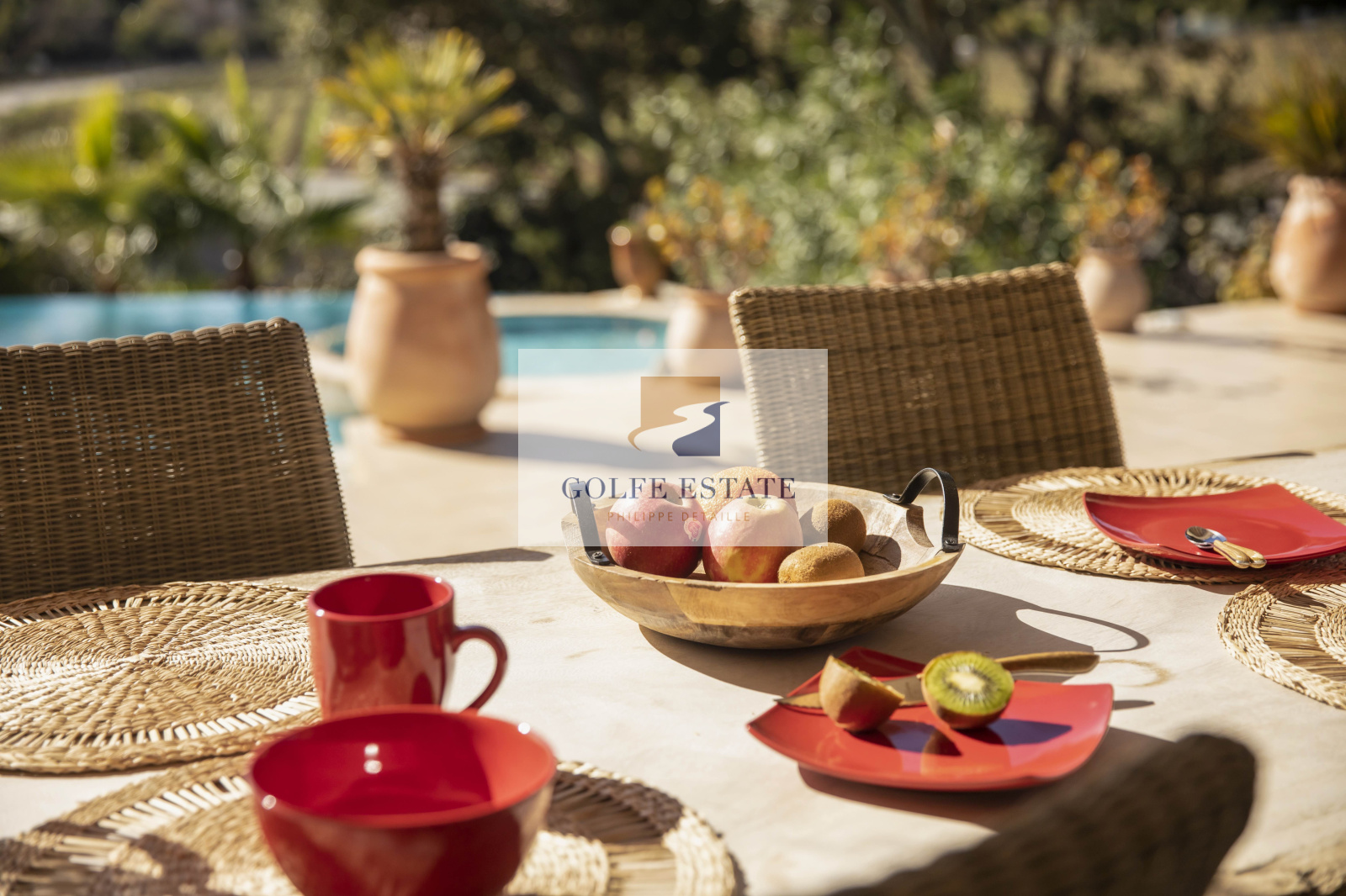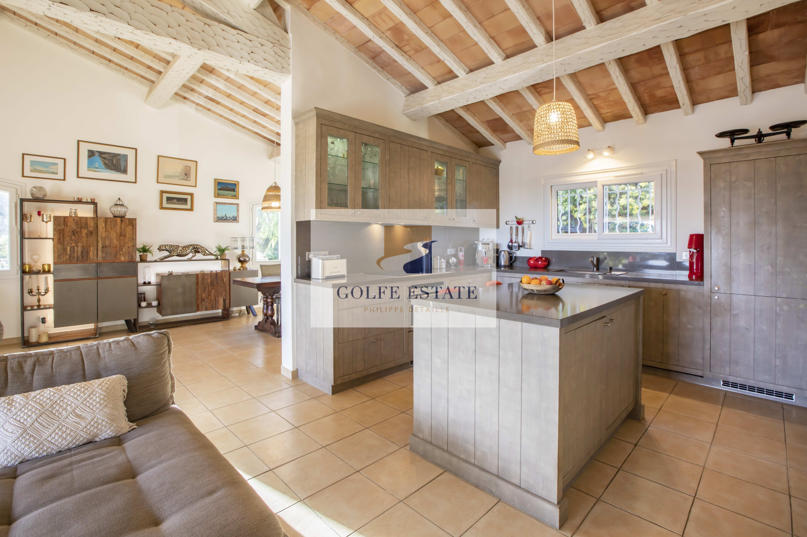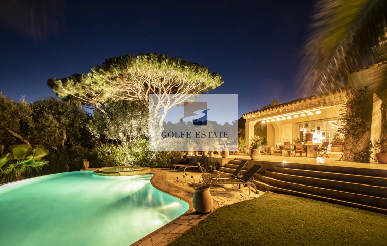 A Gigaro, avec accès à pied à la plage (500 m) et vue mer sur les vignes de la Madrague et la plage de Gigaro, villa pleine de charme entièrement rénovée en 2011 d'environ 175 m2 de surface de plancher. Sous réserve d'obtention d'un permis de construire, possibilité d'agrandir de 1 à 2 chambres supplémentaires en rez-de-jardin. Edifiée sur un très beau terrain paysagé de 1865 m2, cette villa aux volumes généreux, offre un vaste séjour / salle à manger / cuisine ouverte de plus de 63 m2! Une invitation aux réunions familiales et soirées entre amis! Au RDC une entrée accueillante donne accès au séjour, à la buanderie et à l'espace couchage avec un WC invités, une salle de bains et 2 chambres donnant sur terrasse et vue mer. Au premier étage se trouve une chambre parentale en suite avec sa salle de bains et son WC. Une 4ème chambre, un dressing sur couloir, une salle d'eau avec WC complètent l'agencement. Les 2 chambres du 1er étage ont accès à une terrasse tropézienne. La villa a le confort d'une maison à l'année (climatisation réversible dans toutes les chambres). Elle bénéficie aussi d'un grand garage indépendant en pierres sèches avec un atelier / rangement , d'un terrain de pétanque convivial et d'une piscine à débordement en forme libre. La propriété est entièrement clôturée et ne souffre d'aucun vis à vis.