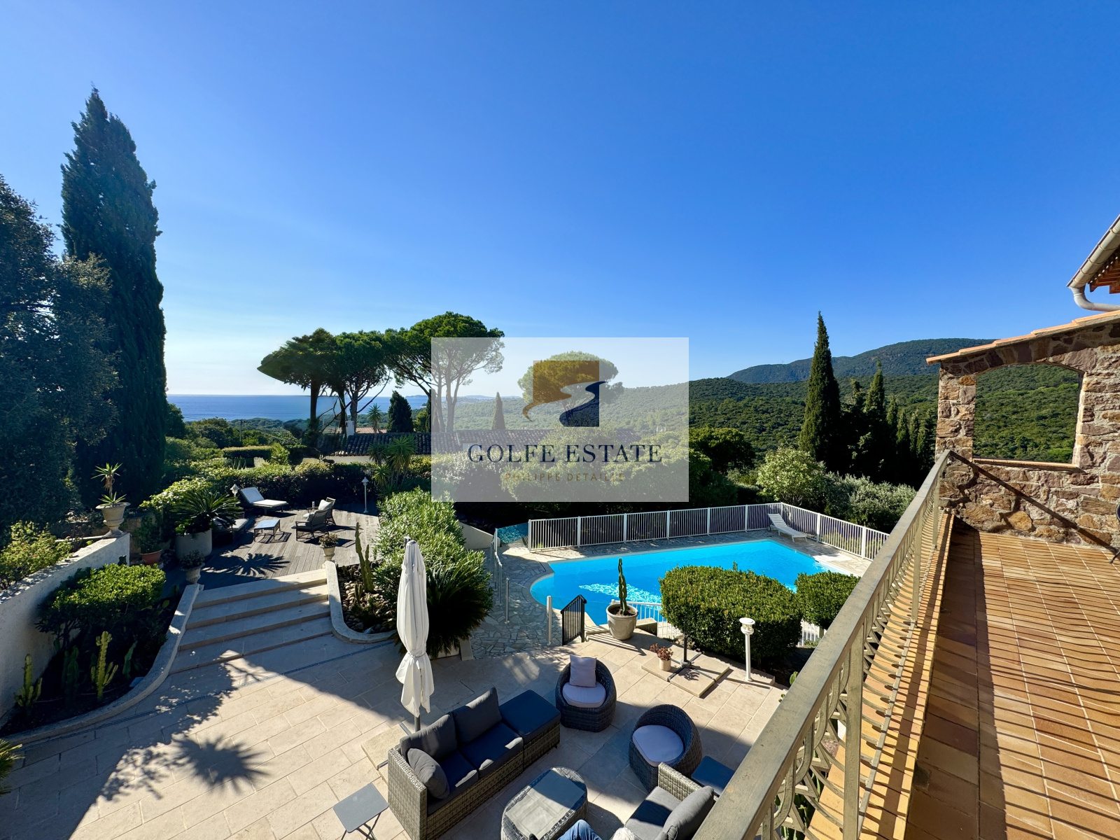 La vue mer, panoramique à l'étage se complète avec une vue également côté Ouest sur les collines des Pradels.