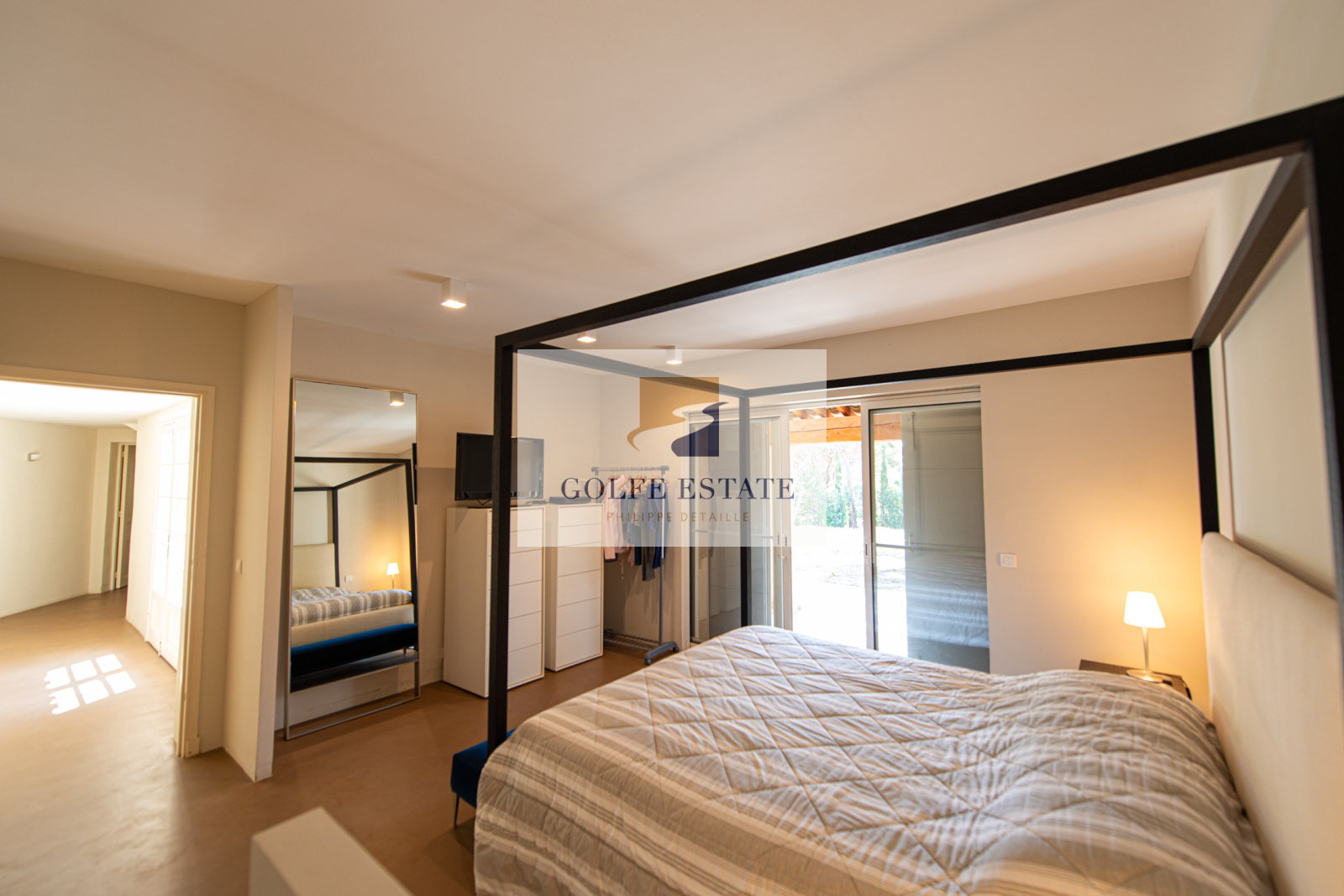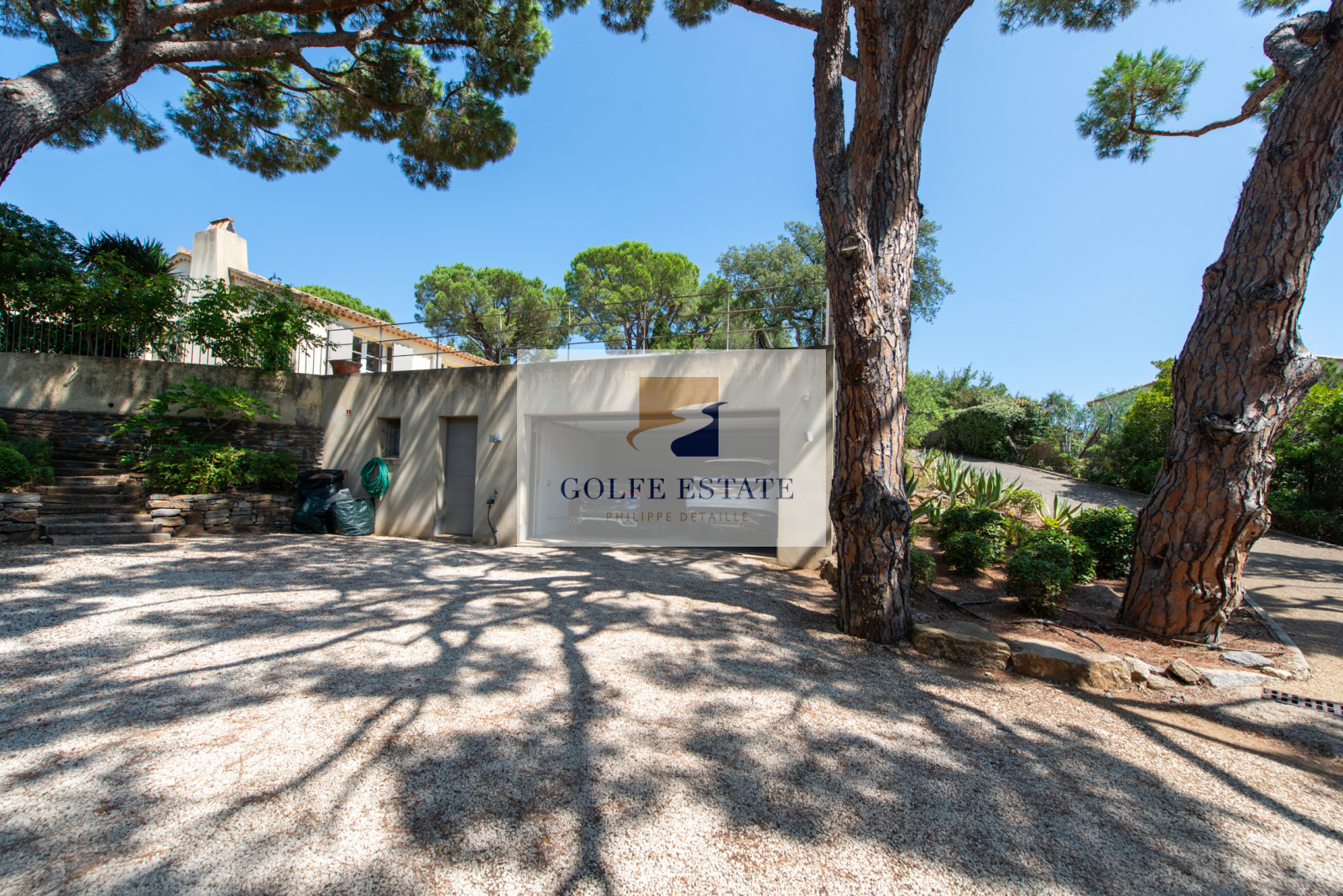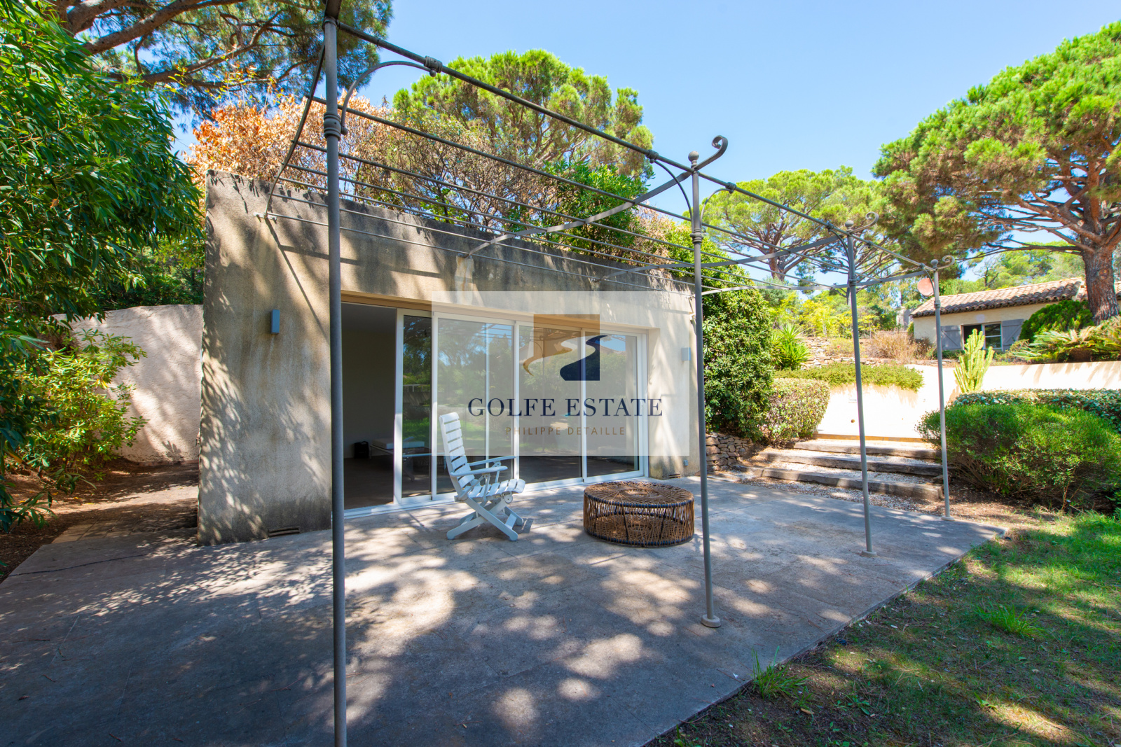 Rare, dans un lotissement prestigieux et sécurisé de Gigaro, propriété de charme d'environ 320 m2 de surface de plancher (dont 287 m2 habitable), entièrement rénovée en 2011. Les 3 000 m2 de terrain et jardin paysagé, orienté Sud , Sud / Ouest, donnent, dès les premiers pas, une vraie notion de propriété spacieuse et lumineuse.