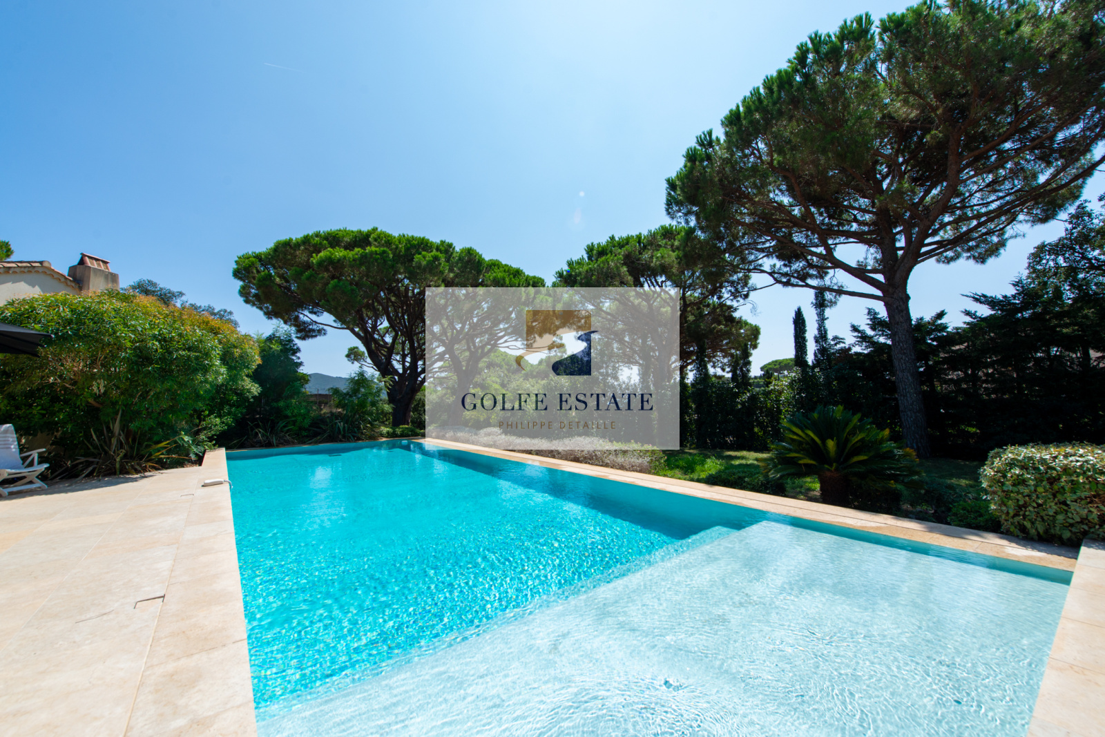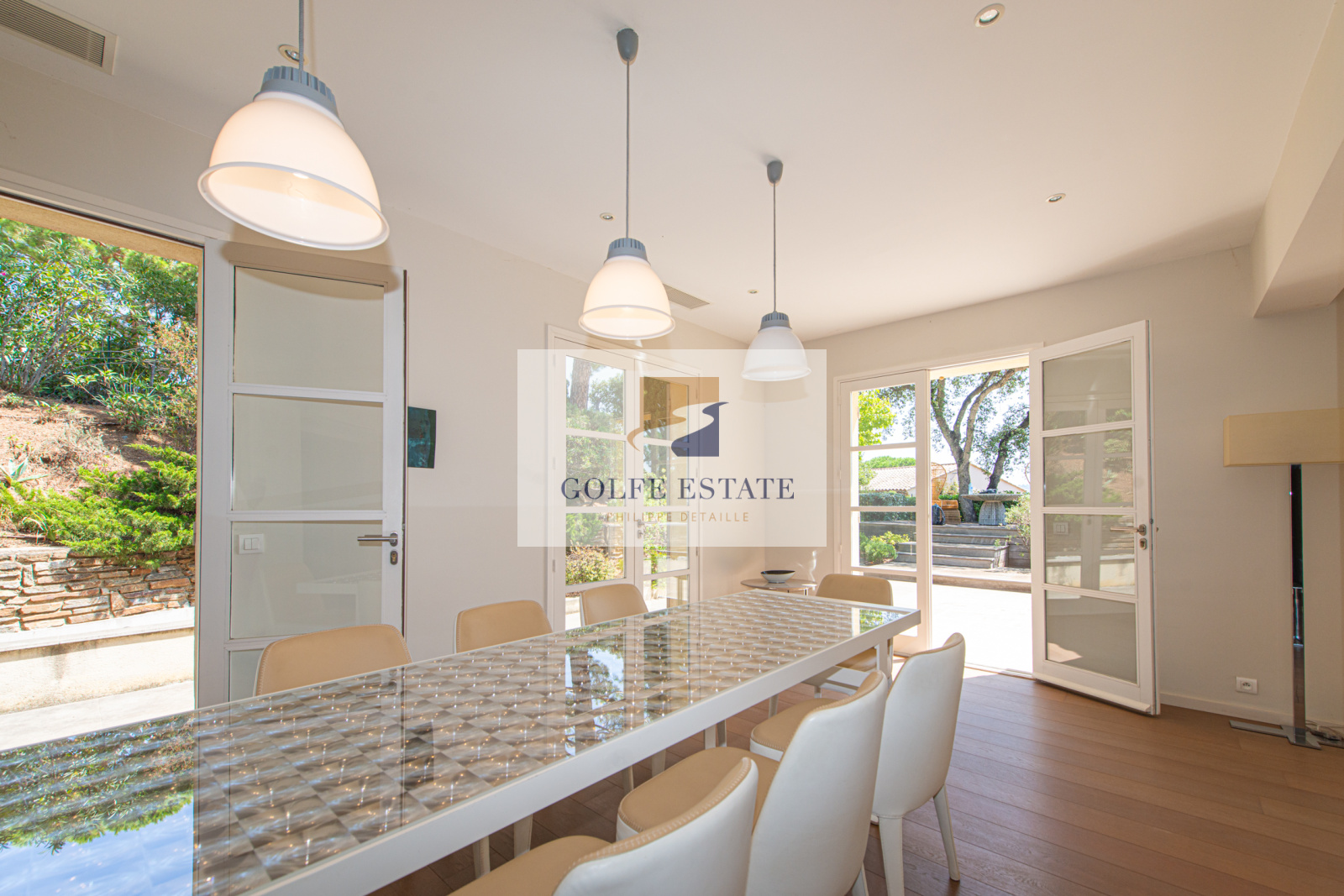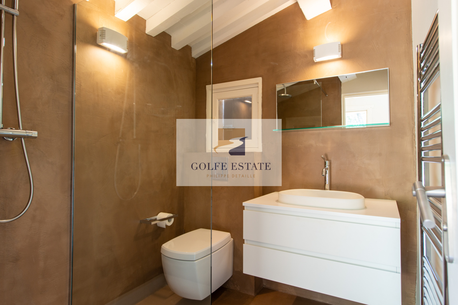 Rare, dans un lotissement prestigieux et sécurisé de Gigaro, propriété de charme d'environ 320 m2 de surface de plancher (dont 287 m2 habitable), entièrement rénovée en 2011. Les 3 000 m2 de terrain et jardin paysagé, orienté Sud , Sud / Ouest, donnent, dès les premiers pas, une vraie notion de propriété spacieuse et lumineuse.