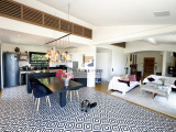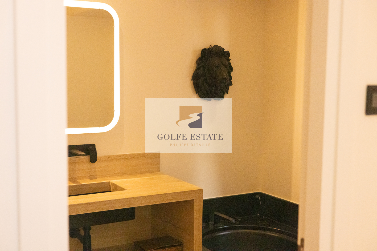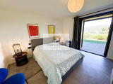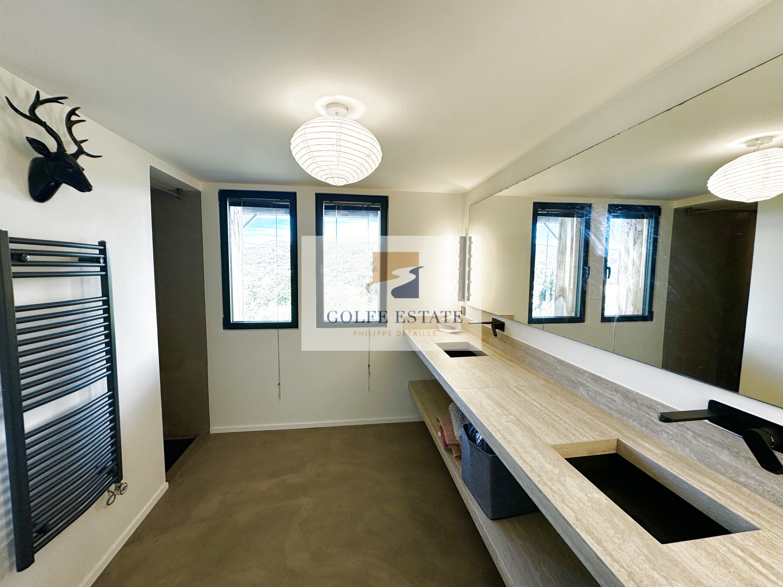 Au rez de chaussée, de plain pied, se trouvent une entrée donnant sur séjour avec poêle à bois, coin salle à manger et cuisine américaine le tout connecté sur une très grande terrasse. Une belle suite parentale avec sa salle de bain / douche et un WC invités complètent le descriptif de ce plain pied. A l'étage se trouve un bureau. Au rez de jardin: une grande pièce télévision / bibliothèque, trois grandes chambres, une grande salle d'eau avec deux douches, une buanderie et une cave à vin.