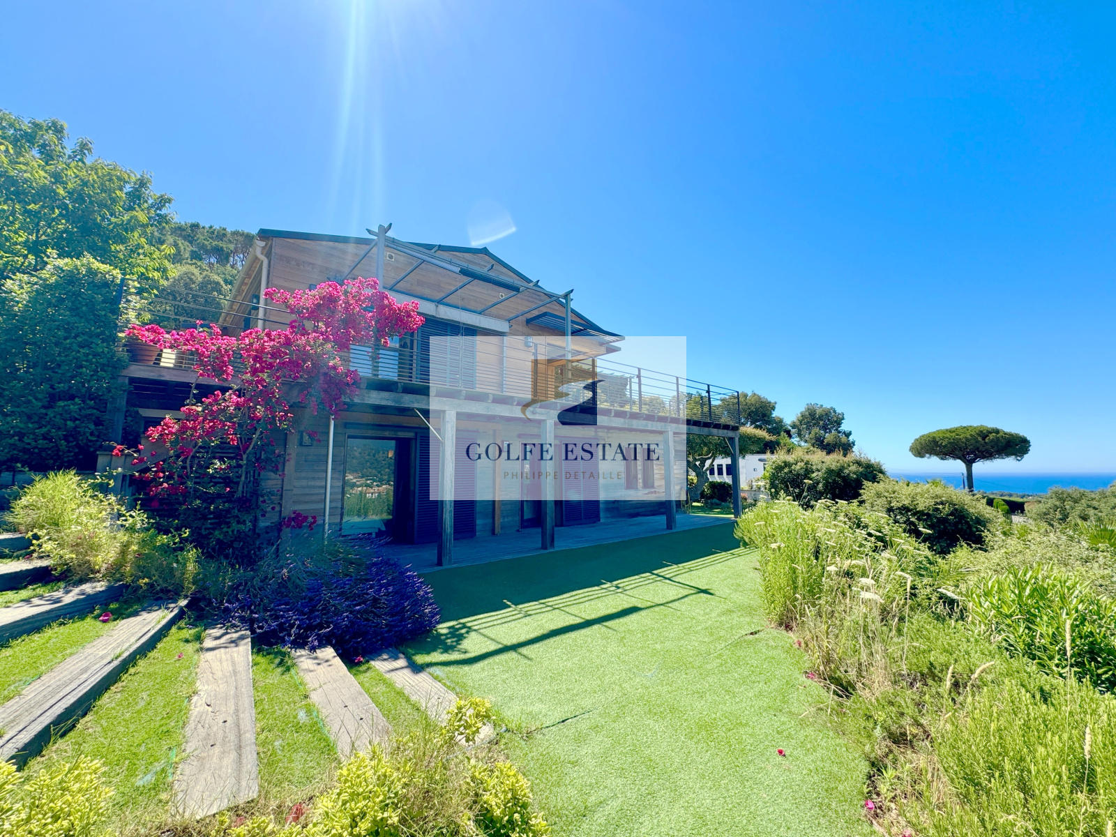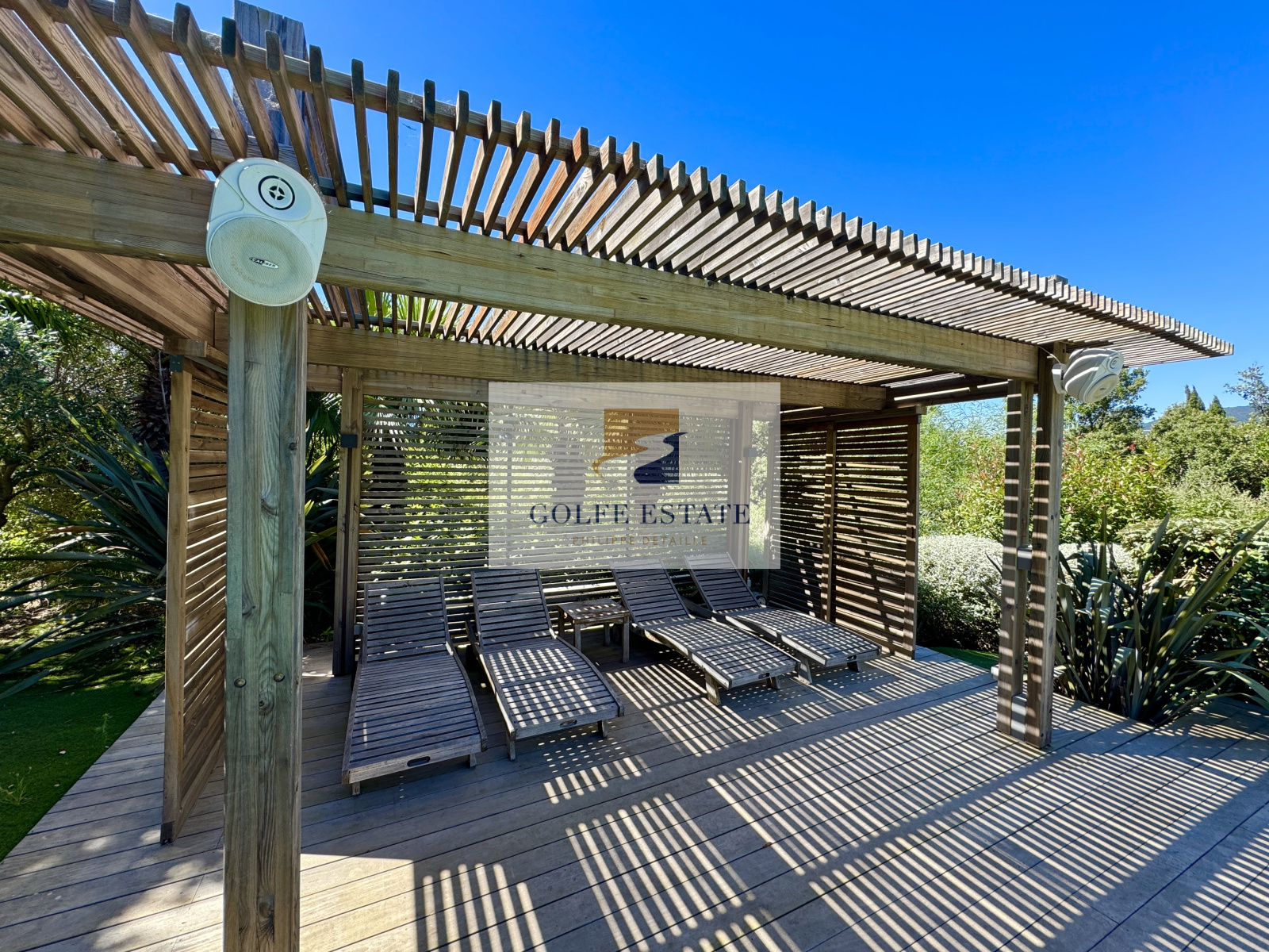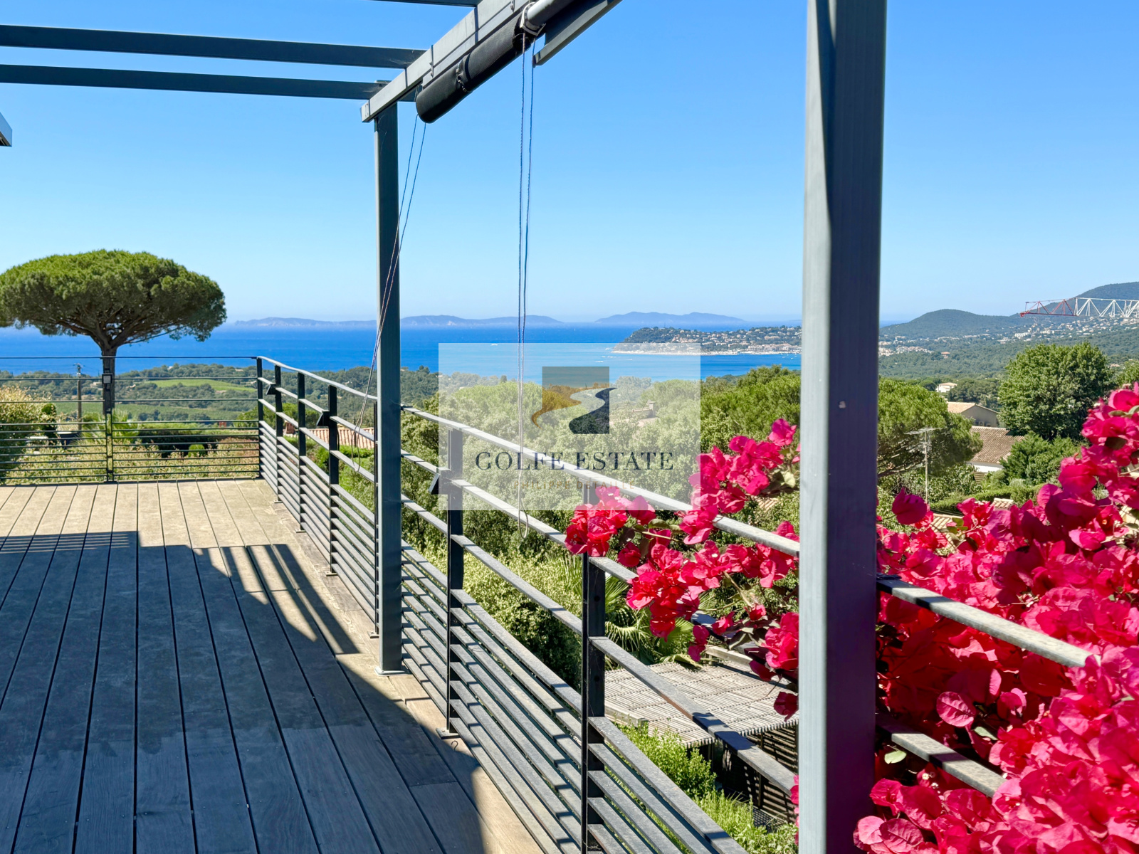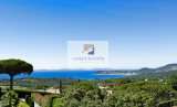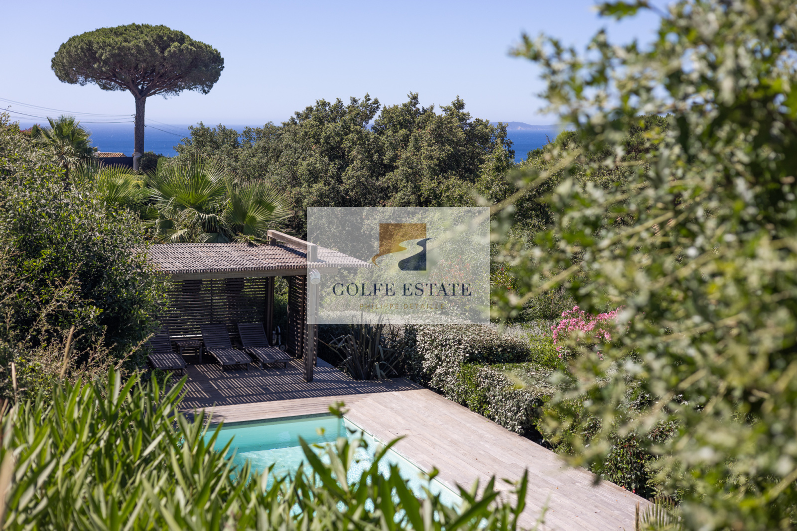 Rare à la Croix-Valmer, dans un quartier résidentiel prisé et sécurisé, cette villa d'architecte pleine de charme et de caractère d'environ 200 m2, entièrement rénovée en 2019, profite d'un emplacement premium: accès à pied au village et vue panoramique époustouflante depuis la baie de Cavalaire, les Iles d'Or, les collines des Pradels et jusqu'au village de Grimaud. Les 2 200 m2 de terrain offrent un bel espace d'accueil pavé avec abri voitures, abri motos, air de retournement et accès au garage. Il y a plusieurs coins terrasse / jardin très indépendants et un belle piscine avec pool house et terrasse couverte.