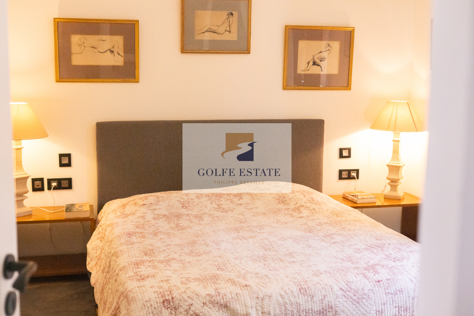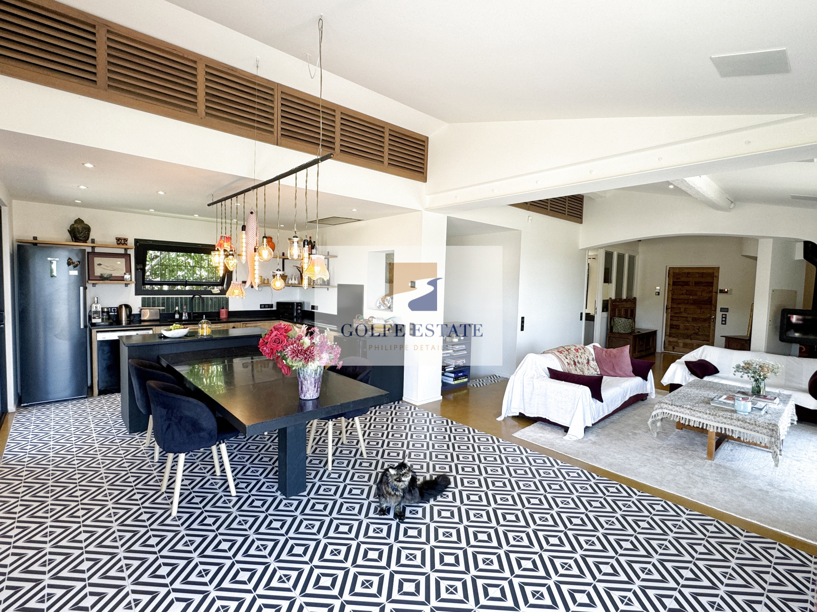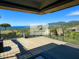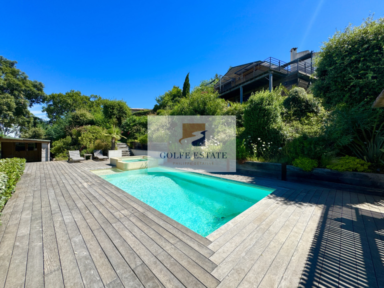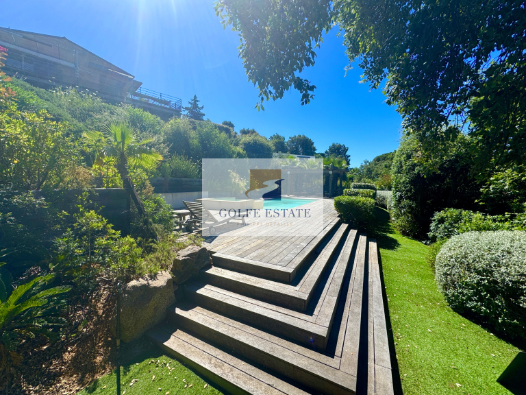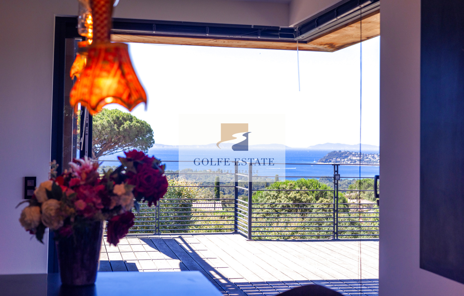 Rare à la Croix-Valmer, dans un quartier résidentiel prisé et sécurisé, cette villa d'architecte pleine de charme et de caractère d'environ 200 m2, entièrement rénovée en 2019, profite d'un emplacement premium: accès à pied au village et vue panoramique époustouflante depuis la baie de Cavalaire, les Iles d'Or, les collines des Pradels et jusqu'au village de Grimaud. Les 2 200 m2 de terrain offrent un bel espace d'accueil pavé avec abri voitures, abri motos, air de retournement et accès au garage. Il y a plusieurs coins terrasse / jardin très indépendants et un belle piscine avec pool house et terrasse couverte.