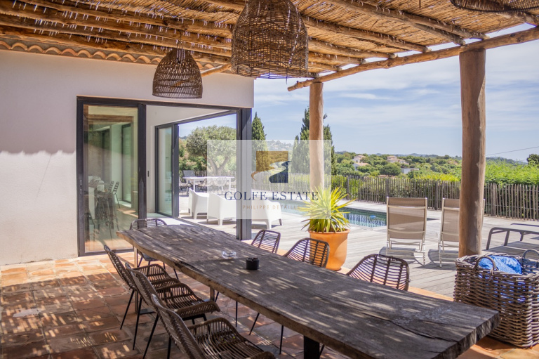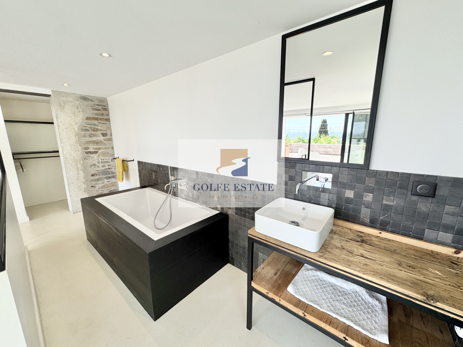 Proche du village, avec une superbe vue mer, cette villa offre un très charmant cadre de vie.