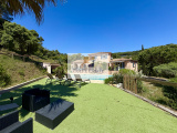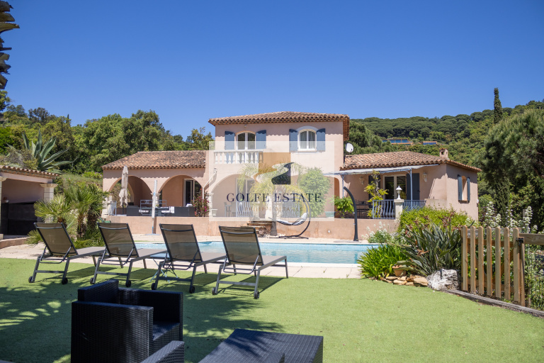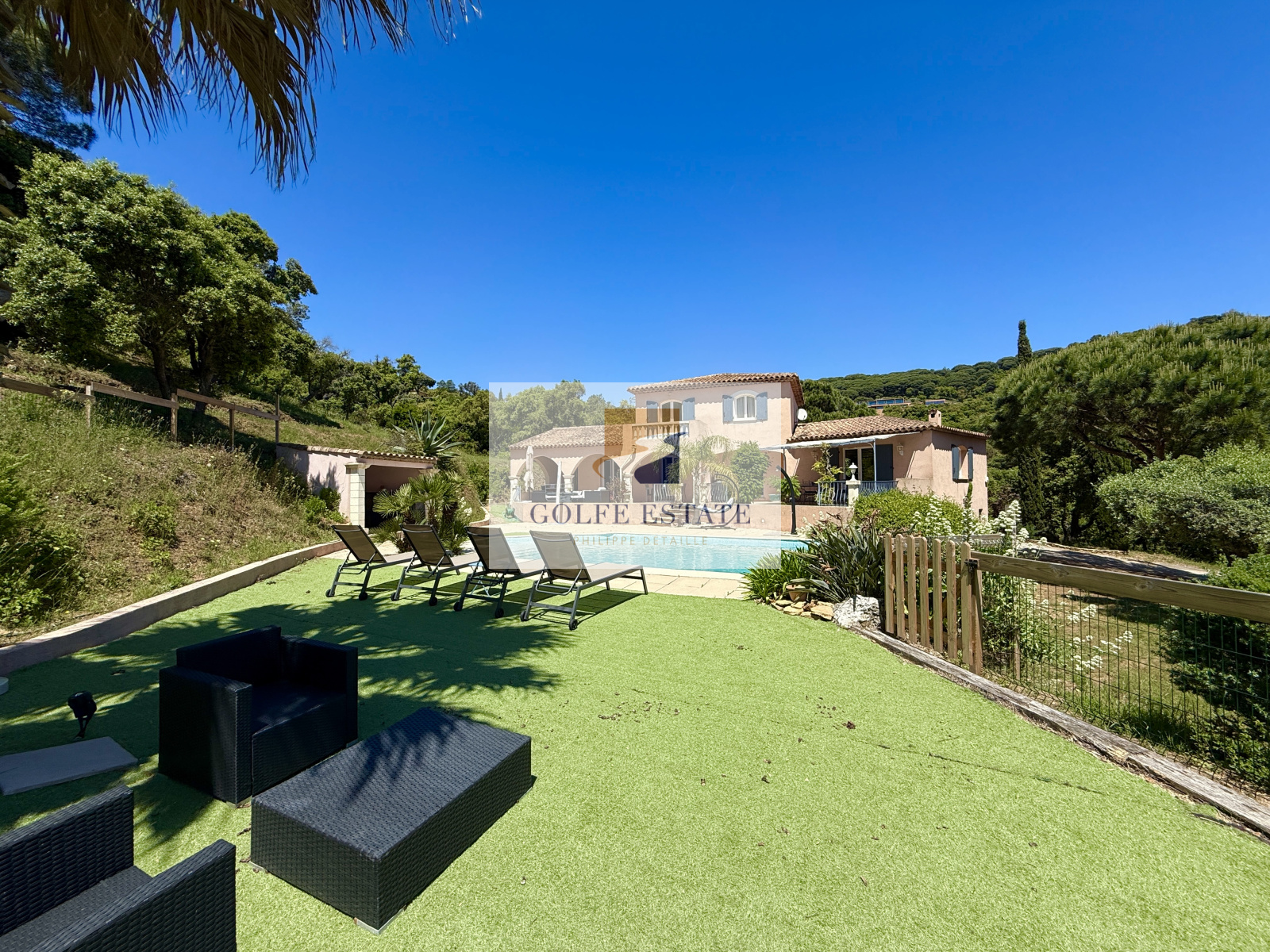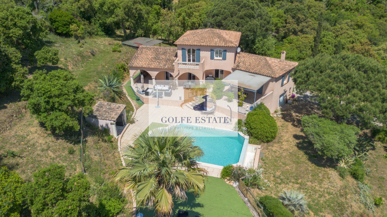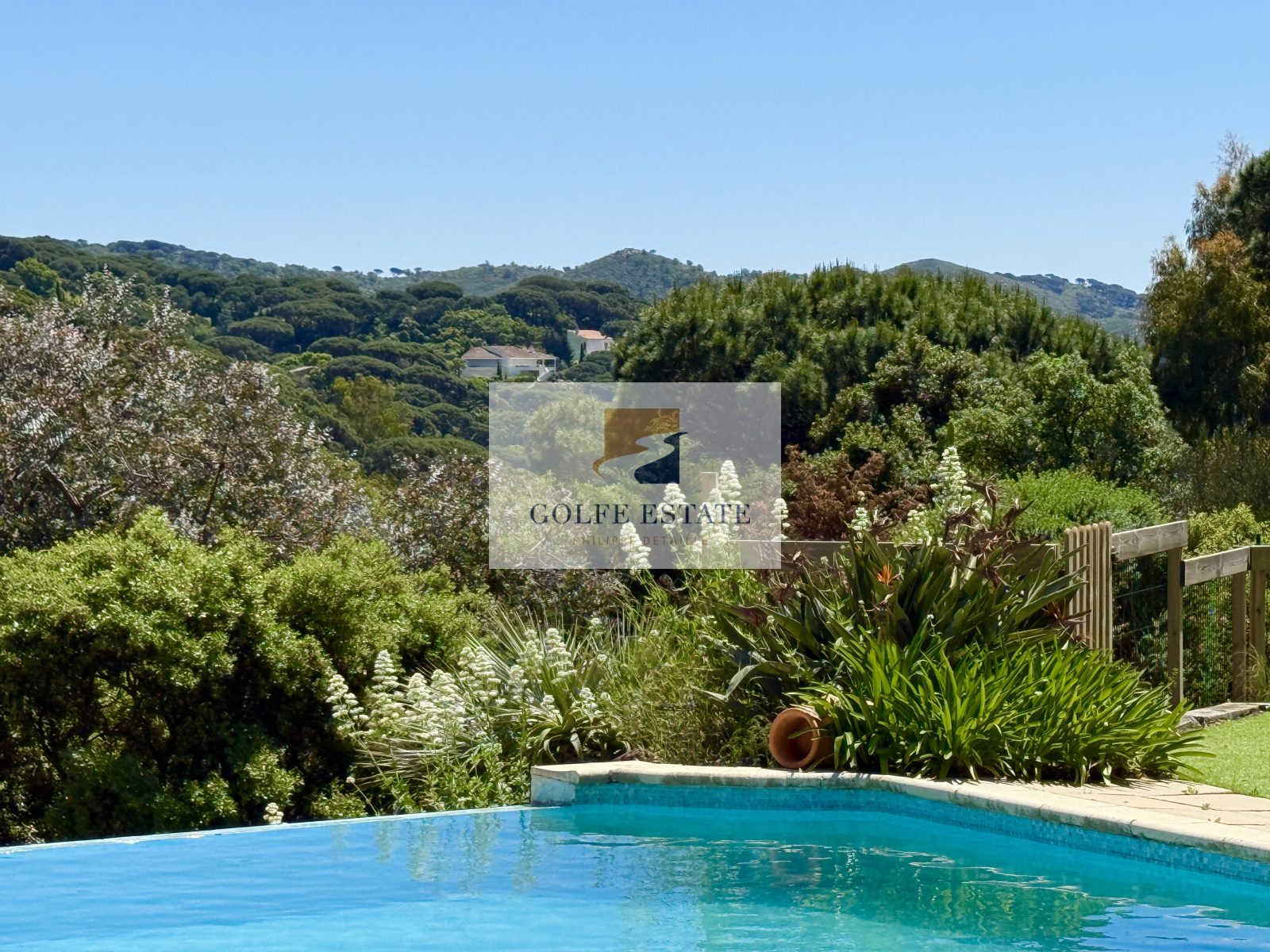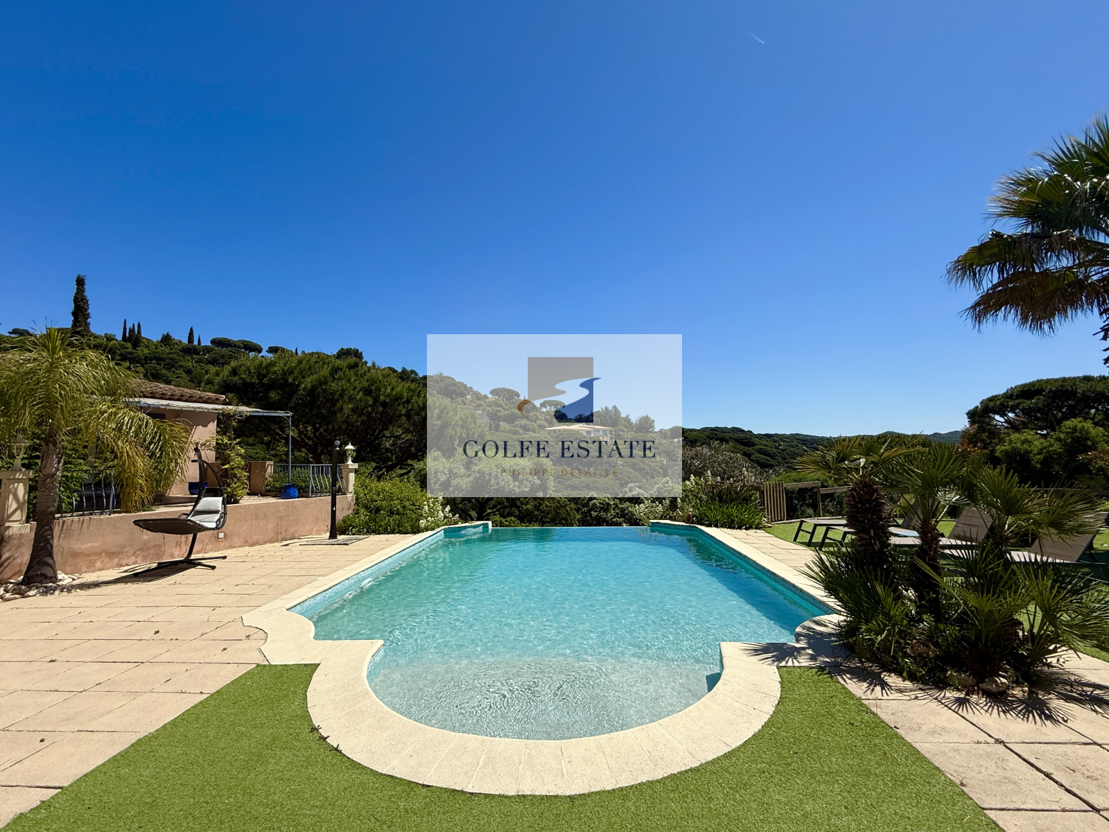 Proche de Gigaro, à La Croix-Valmer, cette maison de charme d'environ 182 m2, de construction traditionelle , a été édifiée en 1998 sur un beau terrain de plus d'un demi hectare, au coeur d'un lotissement prestigieux. Dés les premières secondes, la notion de "propriété" est évidente. Au calme et orientée plein sud , les pièces de vie et les chambres sont baignées de soleil. La vue dégagée sur le collines et la forêt de pins parasol est apaisante. On profite d'un petit aperçu mer à l'étage. Edifiée sur 3, niveaux, elle se compose au RDC d'une entrée, d'une salle à manger, d'un séjour avec une charmante cheminée, d'une cuisine semi-ouverte, de 2 chambres, une salle de bains et un WC. A l’étage, une grande suite parentale avec sa salle de bains et son espace dressing/bureau qui peut-être un 4ème couchage pour enfants. Au sous-sol un très grand garage de 46 m2, une cave à vin et le local technique de la piscine complètent le descriptif. Grand espace parking invités et un abri pour 2 voitures. Propriété clé en main qui offre également du potentiel (possibilité d'extension sous réserve d'une autorisation d'urbanisme).