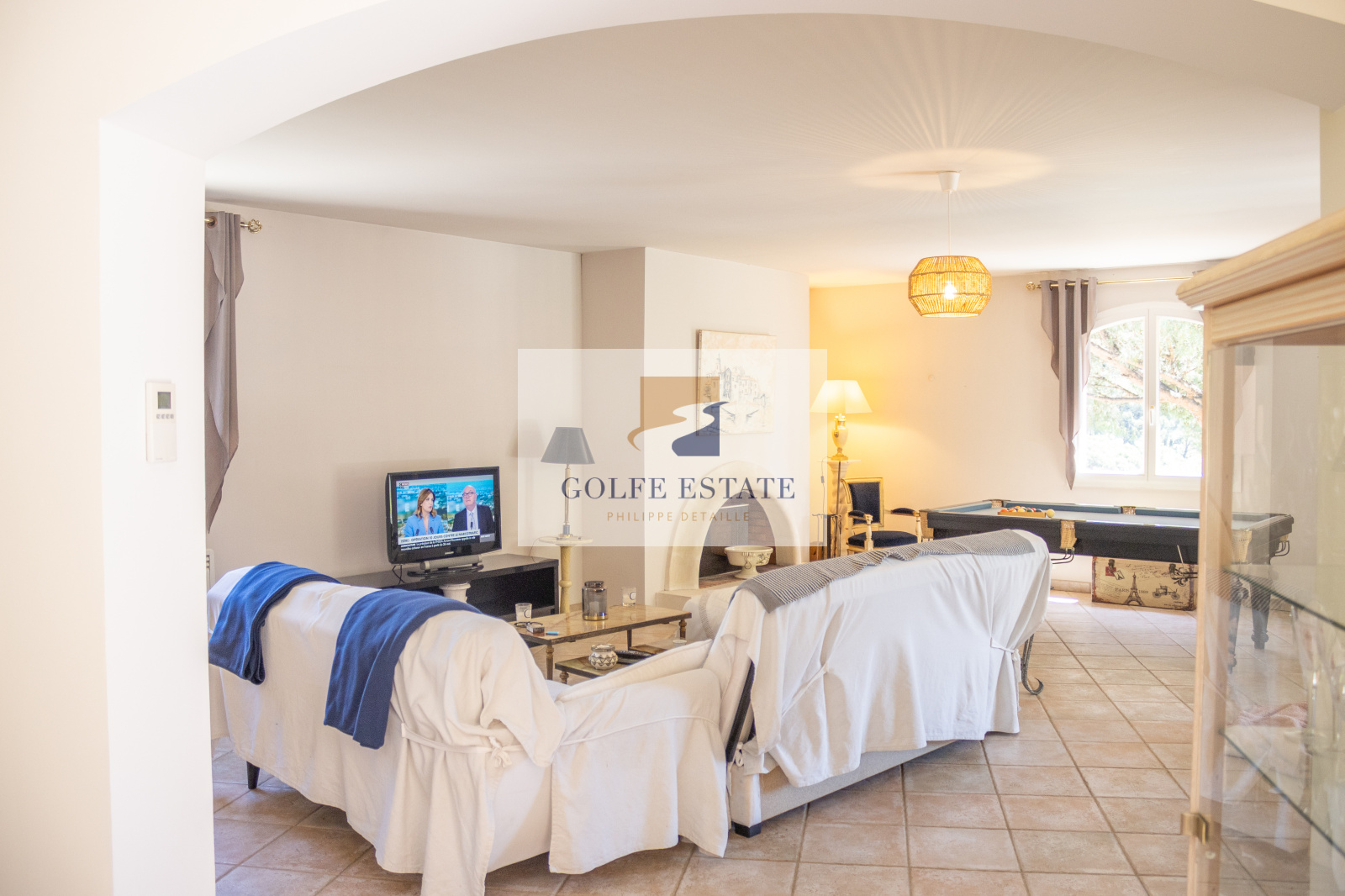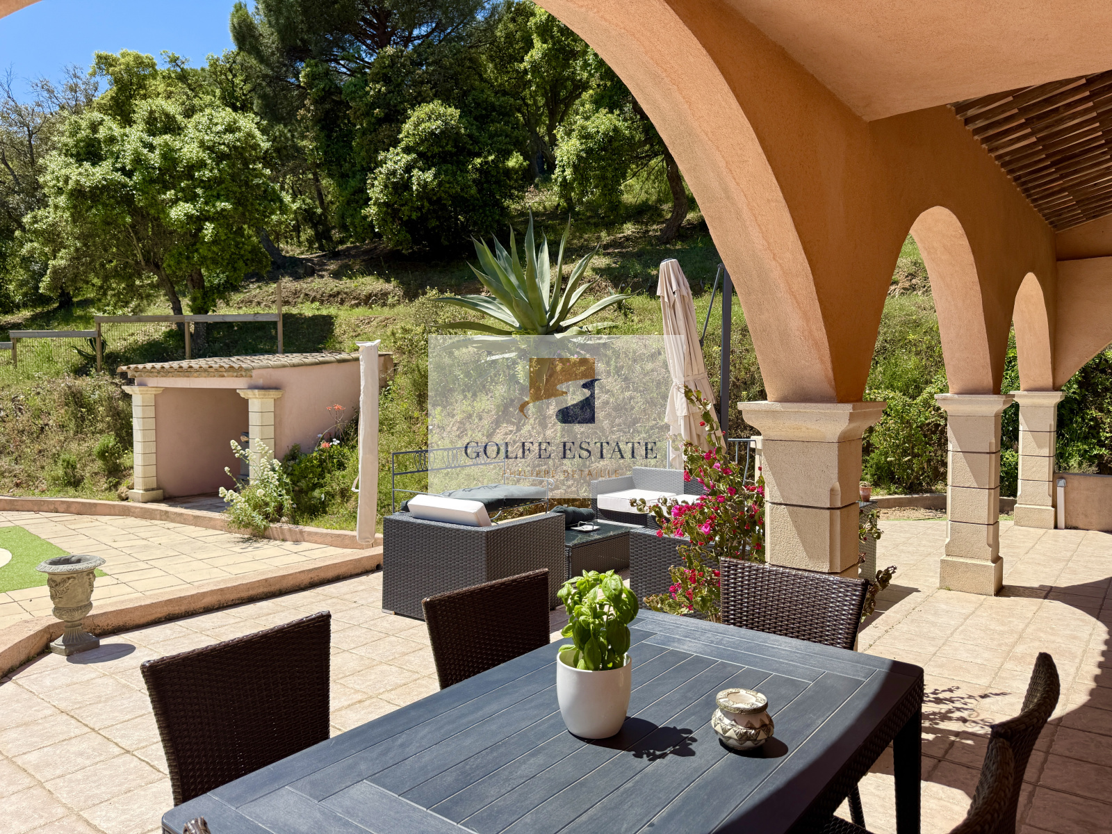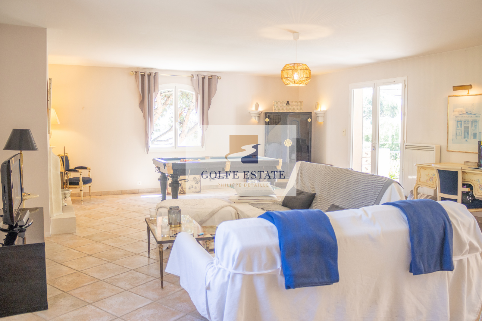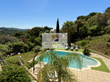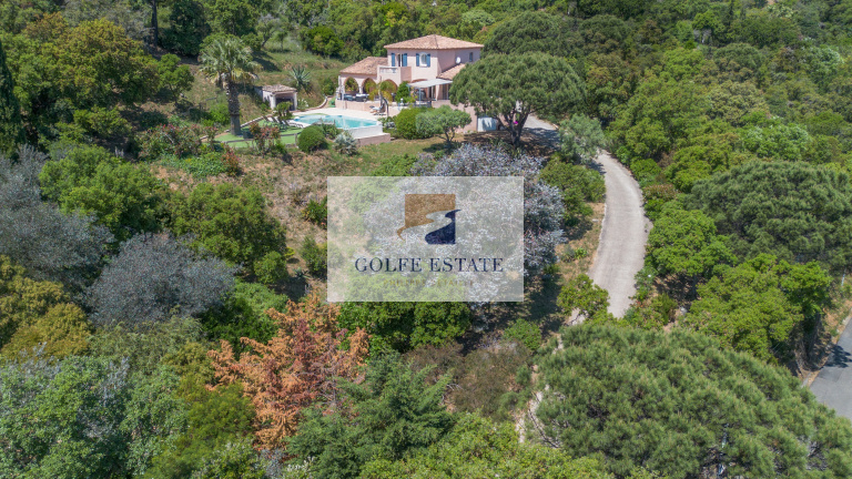 Proche de Gigaro, à La Croix-Valmer, cette maison de charme d'environ 182 m2, de construction traditionelle , a été édifiée en 1998 sur un beau terrain de plus d'un demi hectare, au coeur d'un lotissement prestigieux. Dés les premières secondes, la notion de "propriété" est évidente. Au calme et orientée plein sud , les pièces de vie et les chambres sont baignées de soleil. La vue dégagée sur le collines et la forêt de pins parasol est apaisante. On profite d'un petit aperçu mer à l'étage. Edifiée sur 3, niveaux, elle se compose au RDC d'une entrée, d'une salle à manger, d'un séjour avec une charmante cheminée, d'une cuisine semi-ouverte, de 2 chambres, une salle de bains et un WC. A l’étage, une grande suite parentale avec sa salle de bains et son espace dressing/bureau qui peut-être un 4ème couchage pour enfants. Au sous-sol un très grand garage de 46 m2, une cave à vin et le local technique de la piscine complètent le descriptif. Grand espace parking invités et un abri pour 2 voitures. Propriété clé en main qui offre également du potentiel (possibilité d'extension sous réserve d'une autorisation d'urbanisme).