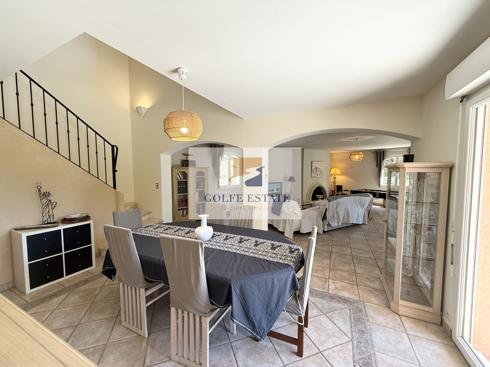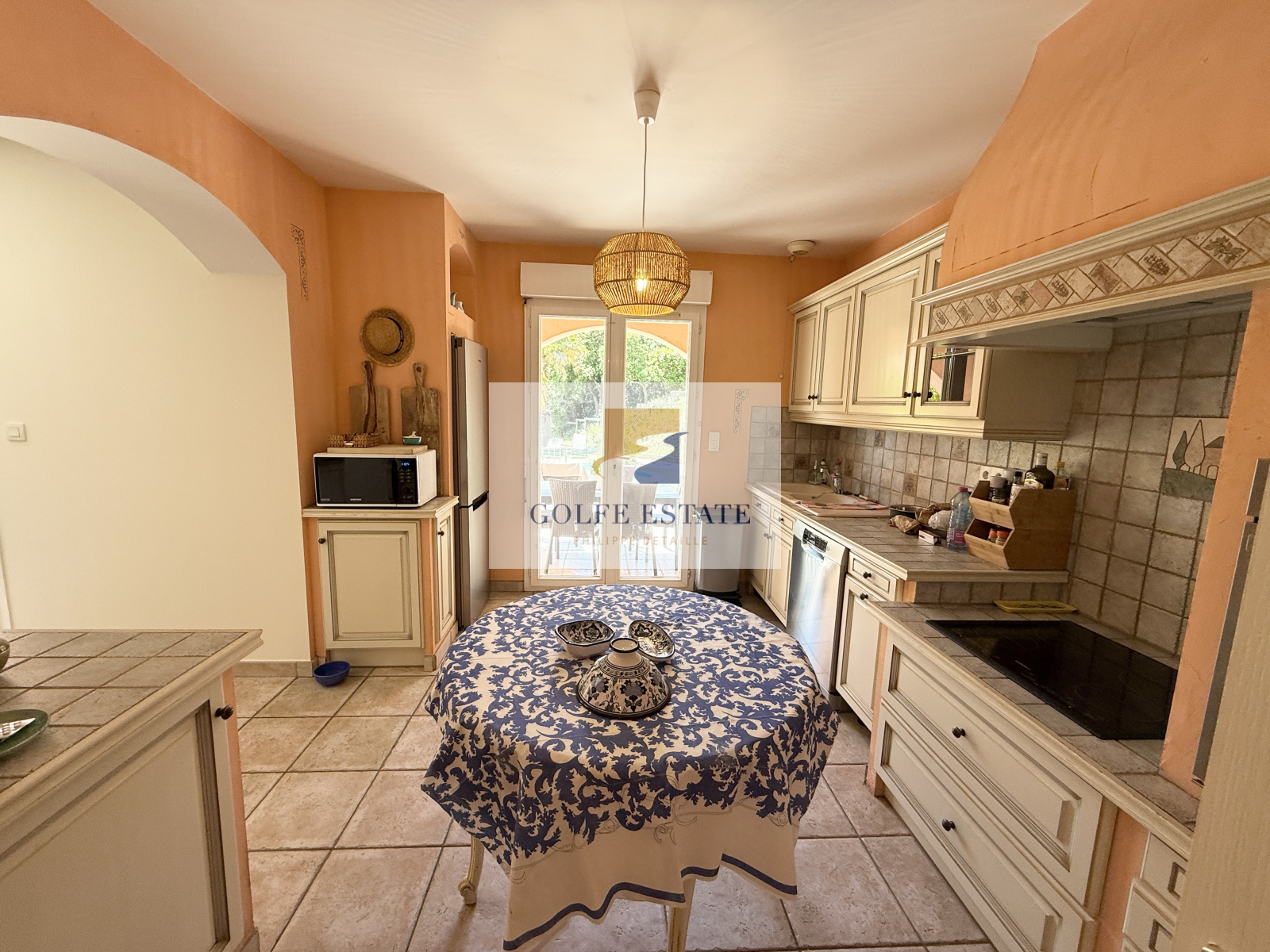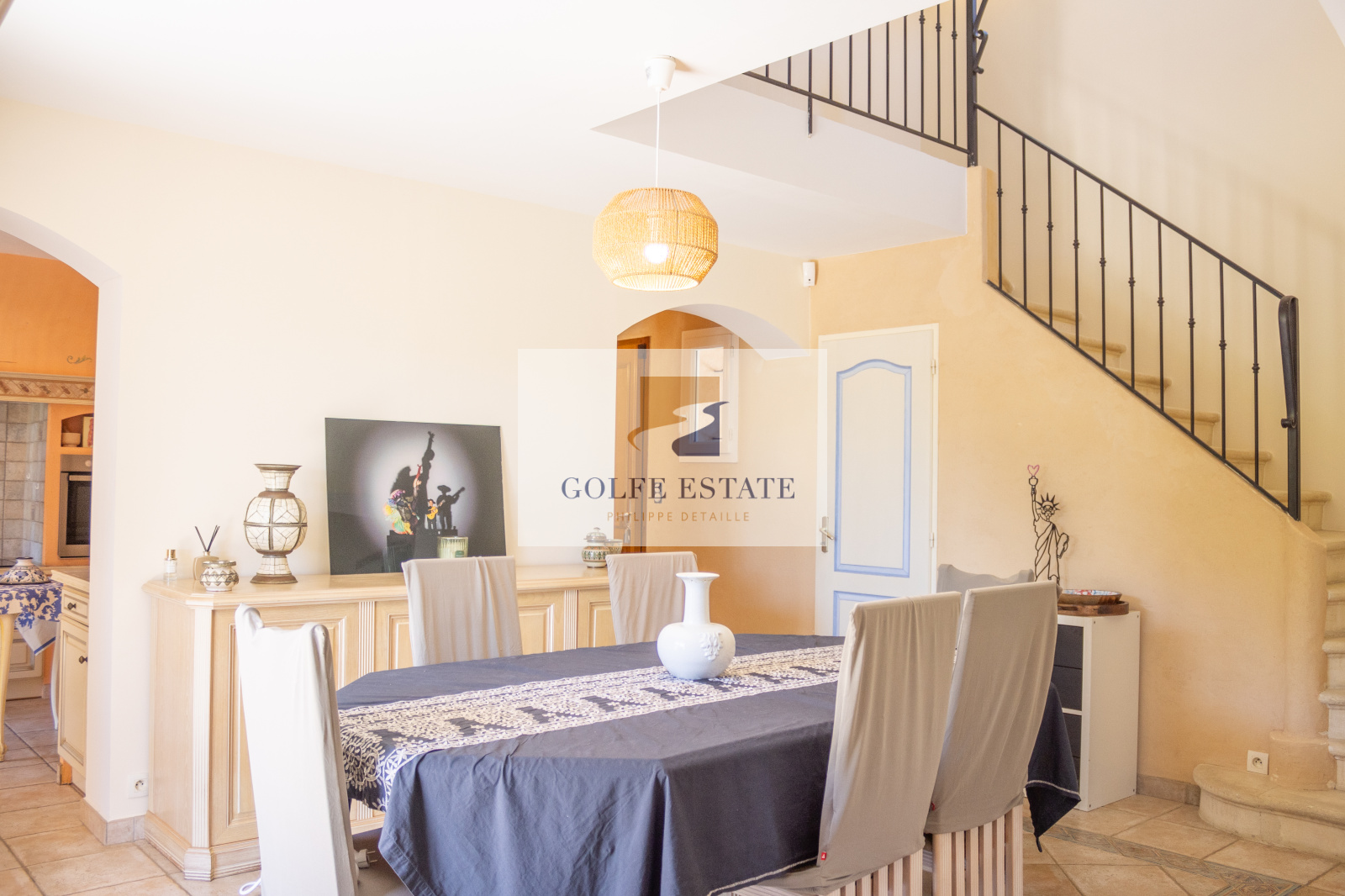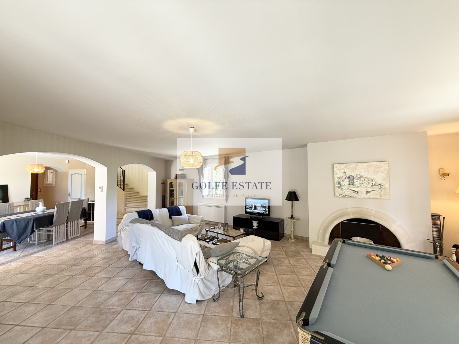 Proche de Gigaro, à La Croix-Valmer, cette maison de charme d'environ 182 m2, de construction traditionelle , a été édifiée en 1998 sur un beau terrain de plus d'un demi hectare, au coeur d'un lotissement prestigieux. Dés les premières secondes, la notion de "propriété" est évidente. Au calme et orientée plein sud , les pièces de vie et les chambres sont baignées de soleil. La vue dégagée sur le collines et la forêt de pins parasol est apaisante. On profite d'un petit aperçu mer à l'étage. Edifiée sur 3, niveaux, elle se compose au RDC d'une entrée, d'une salle à manger, d'un séjour avec une charmante cheminée, d'une cuisine semi-ouverte, de 2 chambres, une salle de bains et un WC. A l’étage, une grande suite parentale avec sa salle de bains et son espace dressing/bureau qui peut-être un 4ème couchage pour enfants. Au sous-sol un très grand garage de 46 m2, une cave à vin et le local technique de la piscine complètent le descriptif. Grand espace parking invités et un abri pour 2 voitures. Propriété clé en main qui offre également du potentiel (possibilité d'extension sous réserve d'une autorisation d'urbanisme).