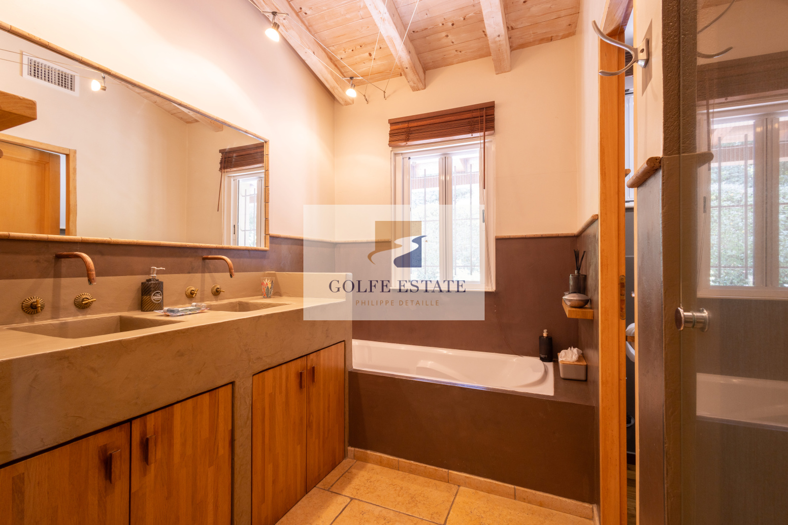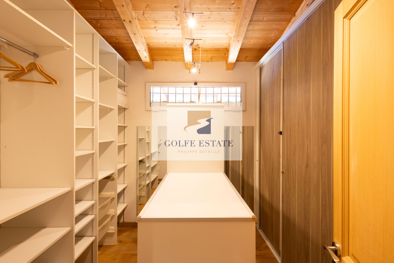 Le couloir dessert deux chambres en suite, une salle dressing ainsi qu’un WC invités.