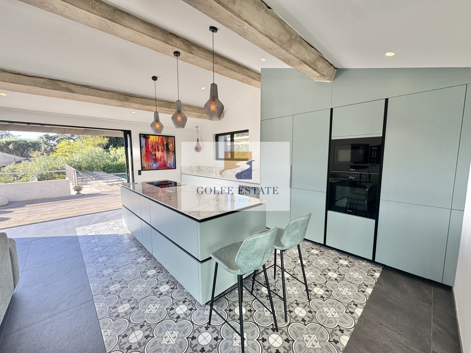 Climatisation dans toutes les pièces, dressing et toilette dans chaque chambre, système son Sonos dans le séjour et à l'extérieur.