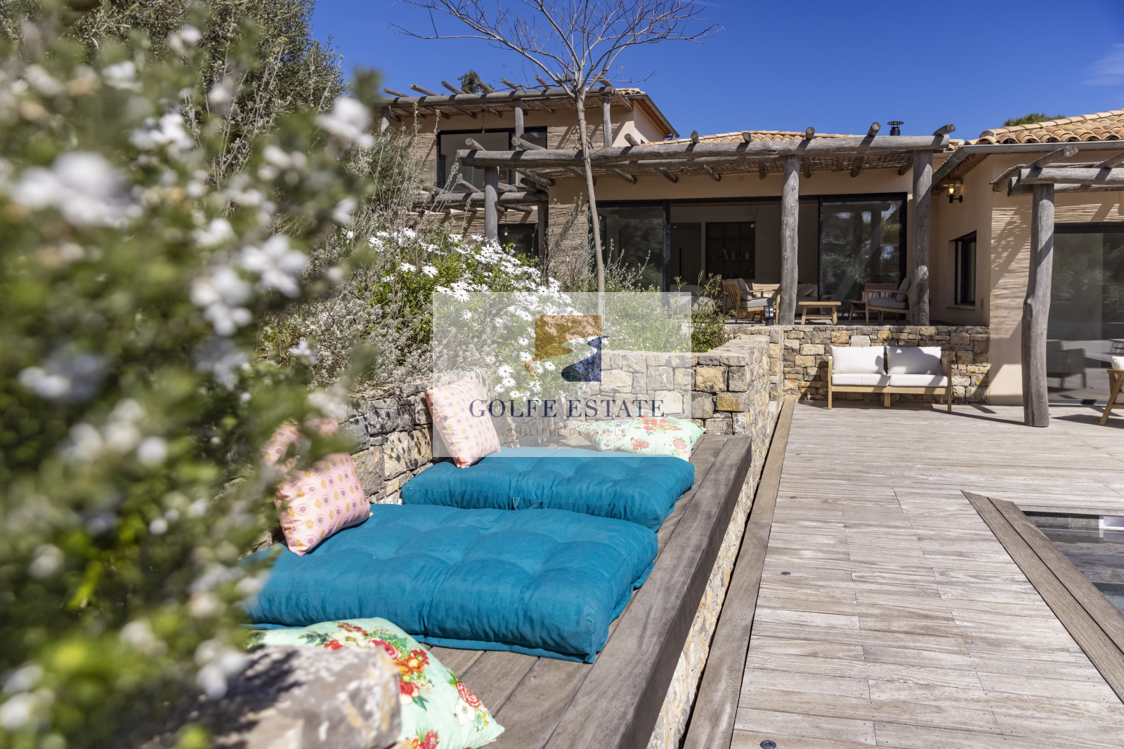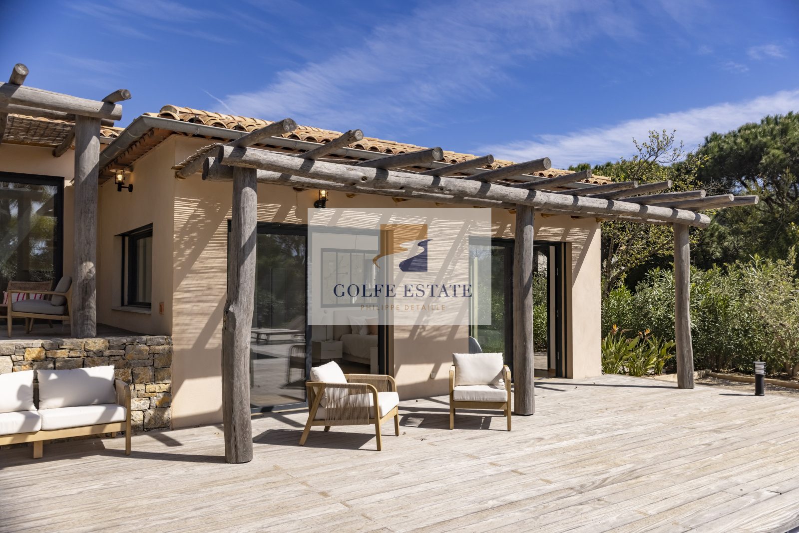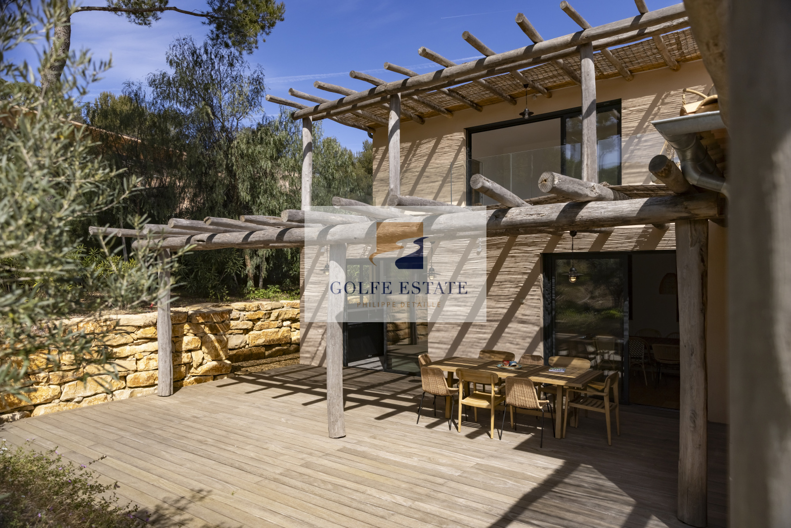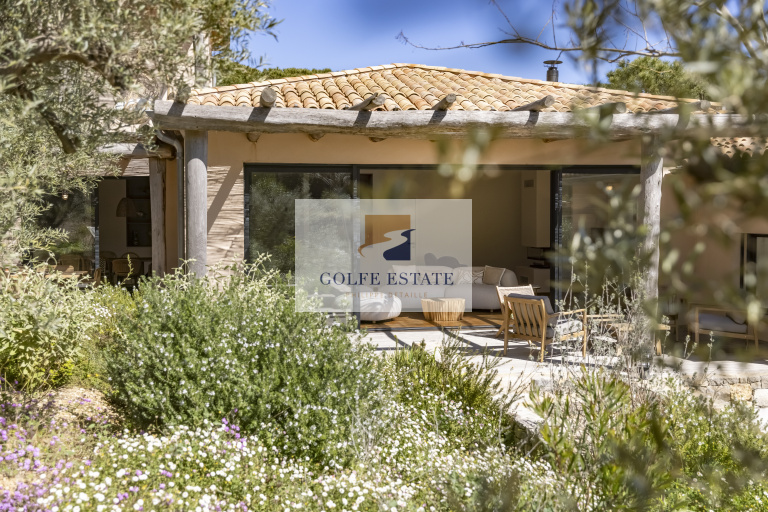 A quelques minutes à pied des plages de GIGARO, côté campagne, au calme absolu et dans la verdure, cette villa neuve réunit tous les éléments de confort actuel. Le jardin paysagé constitué d'une centaine d'essences méditéranéennes et ses murs en pierres, combinés avec des matériaux nobles et de qualité, donnent un charme fou et une ambiance très particulière à la propriété.