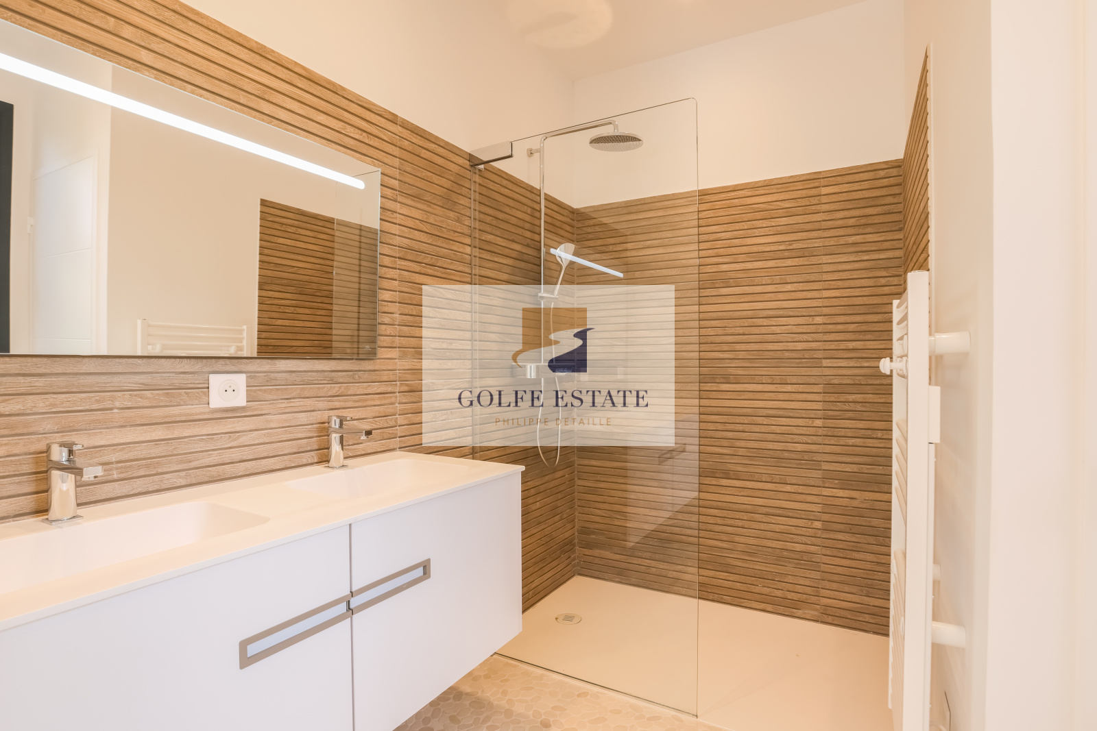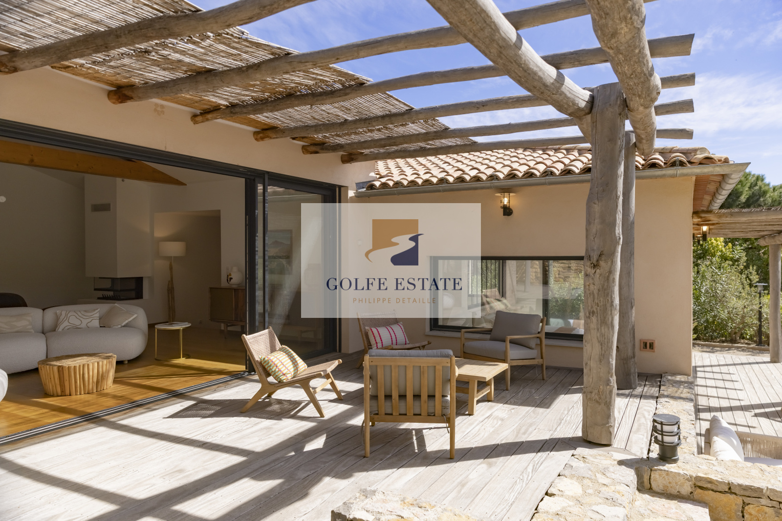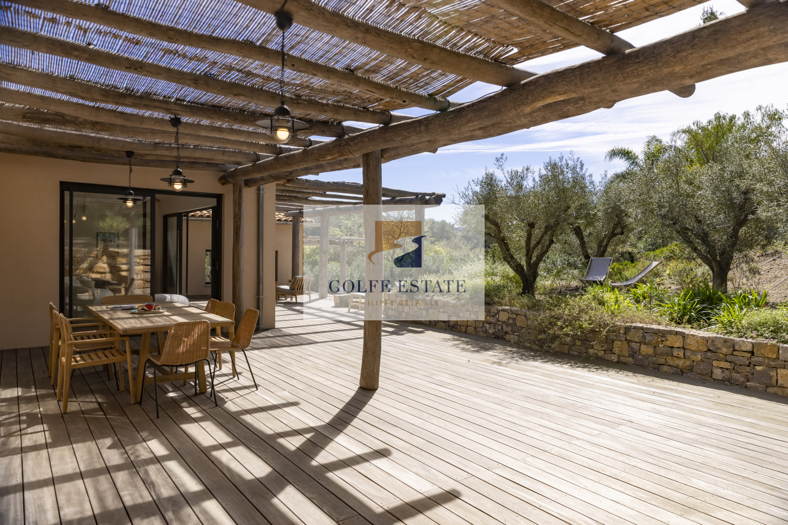 A quelques minutes à pied des plages de GIGARO, côté campagne, au calme absolu et dans la verdure, cette villa neuve réunit tous les éléments de confort actuel. Le jardin paysagé constitué d'une centaine d'essences méditéranéennes et ses murs en pierres, combinés avec des matériaux nobles et de qualité, donnent un charme fou et une ambiance très particulière à la propriété.