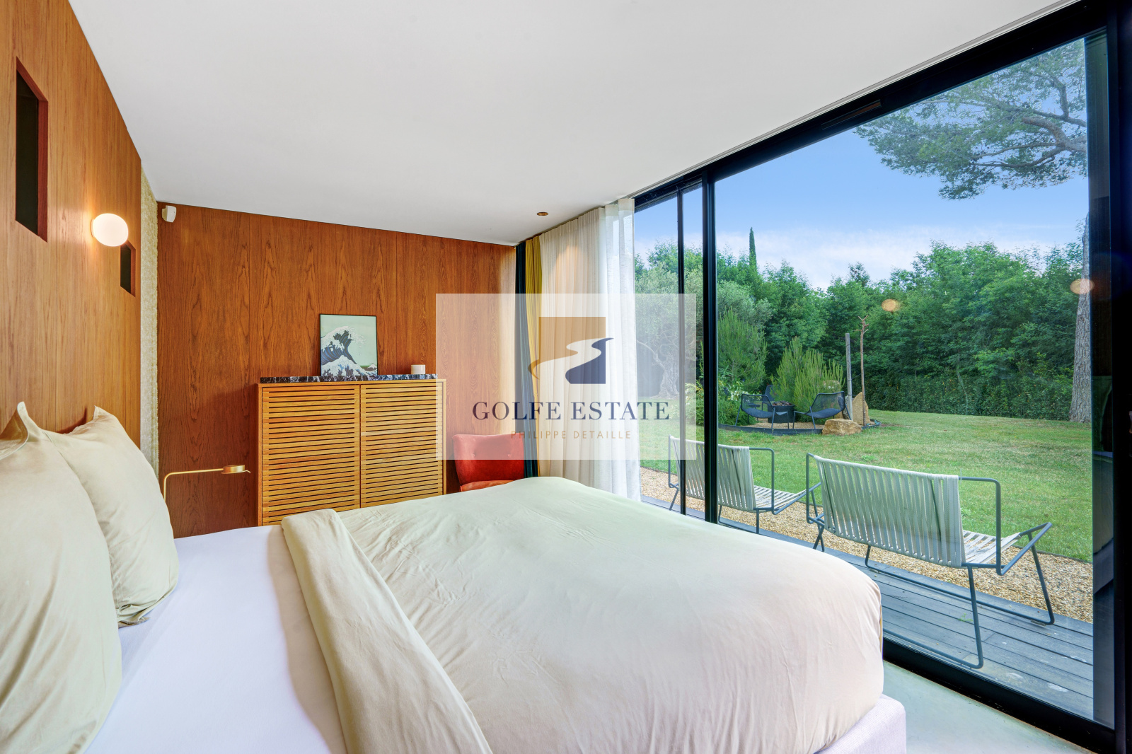 Située dans l'un des plus prestigieux quartiers de la commune de Grimaud, cette villa d'architecte de 250 m² est un bien d'exception, alliant élégance et modernité.