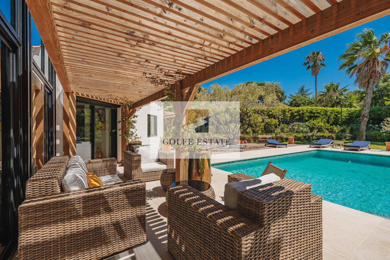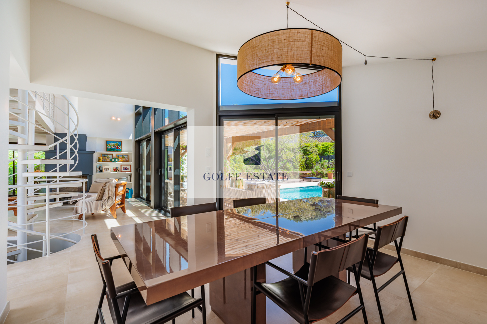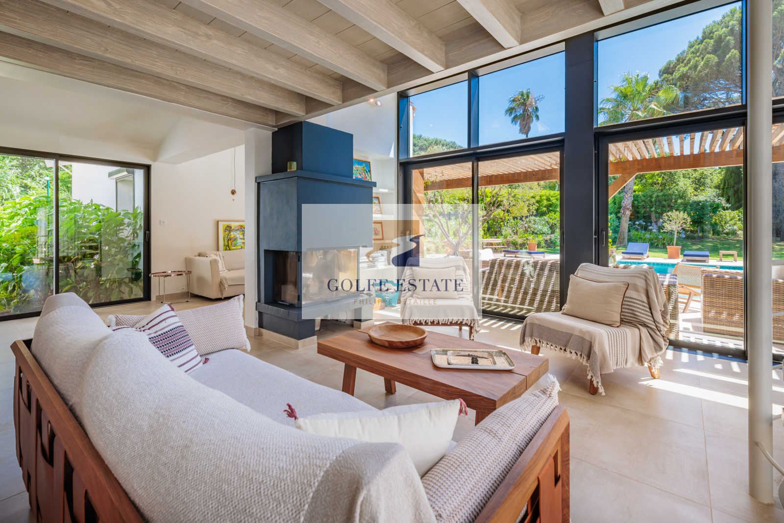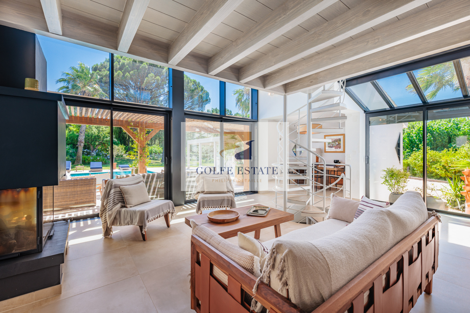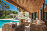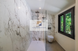 La villa est équipée de la climatisation réversible et de larges ouvertures à galandage dans toutes les pièces, offrant une belle continuité entre intérieur et extérieur.