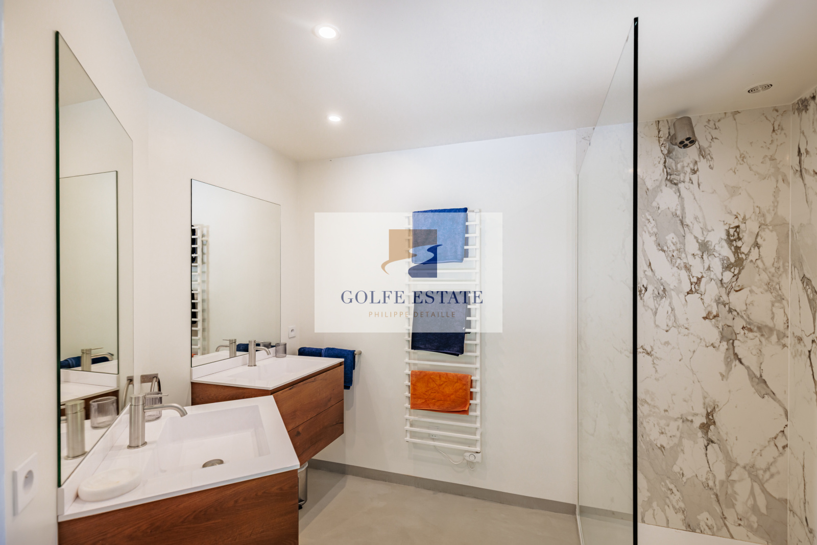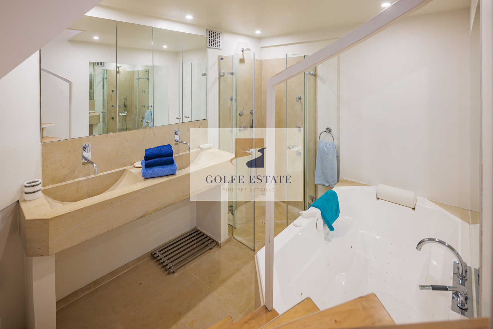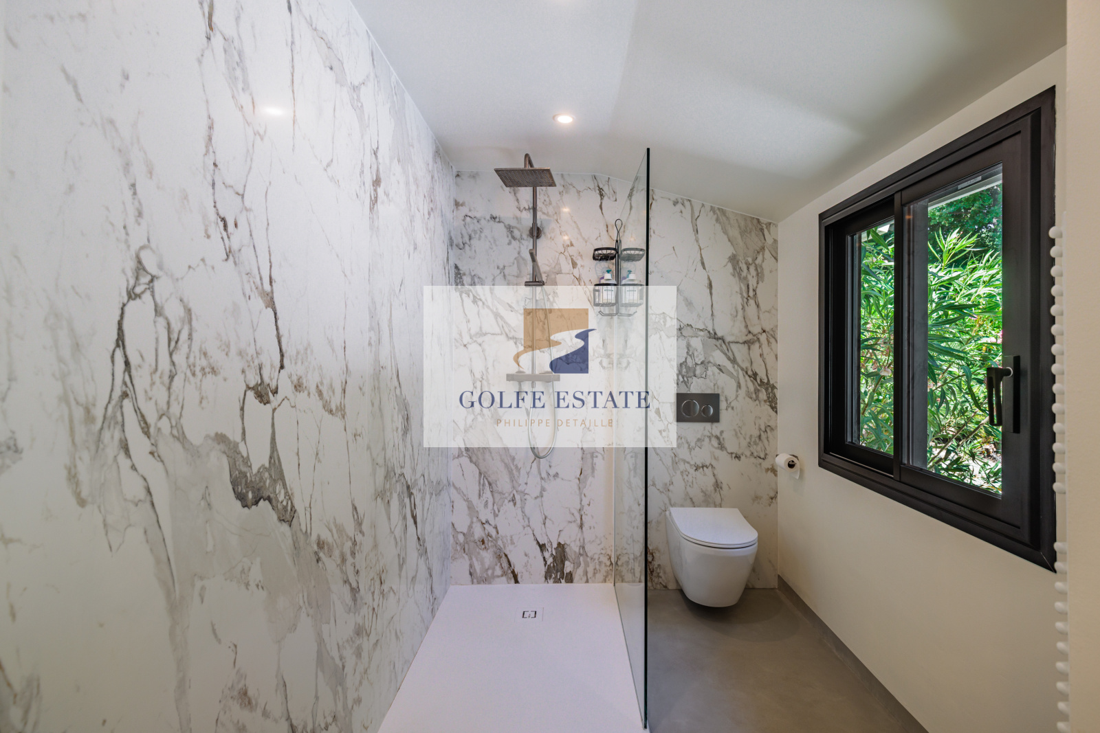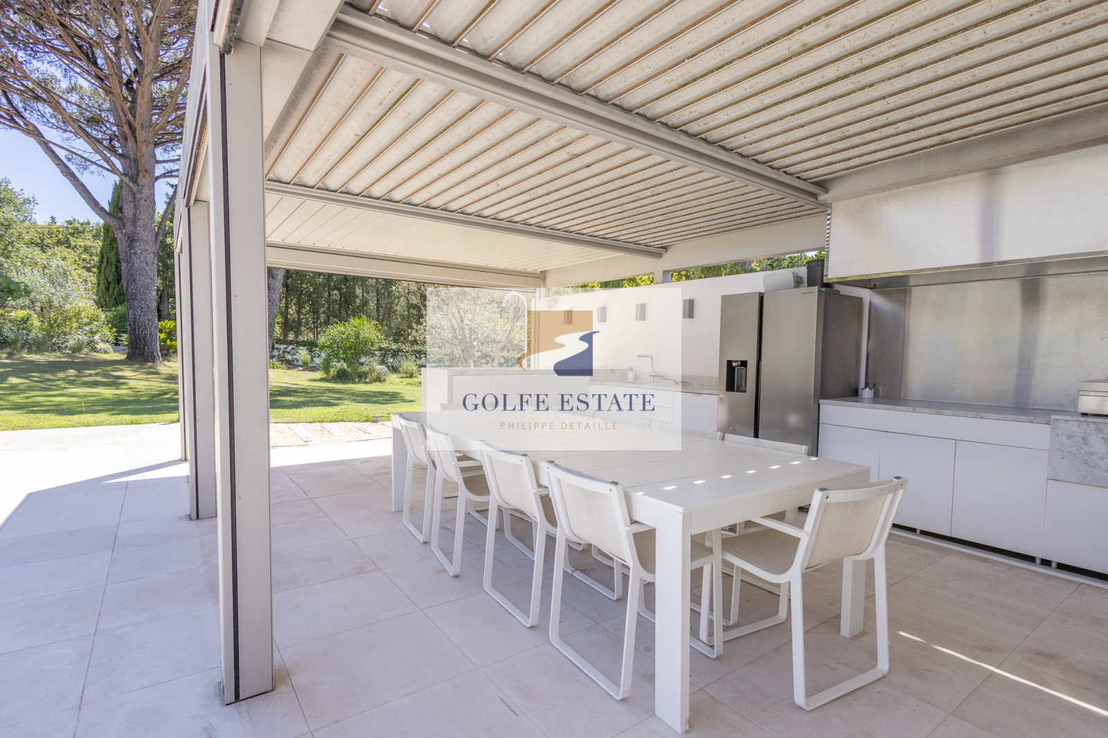 La villa est équipée de la climatisation réversible et de larges ouvertures à galandage dans toutes les pièces, offrant une belle continuité entre intérieur et extérieur.