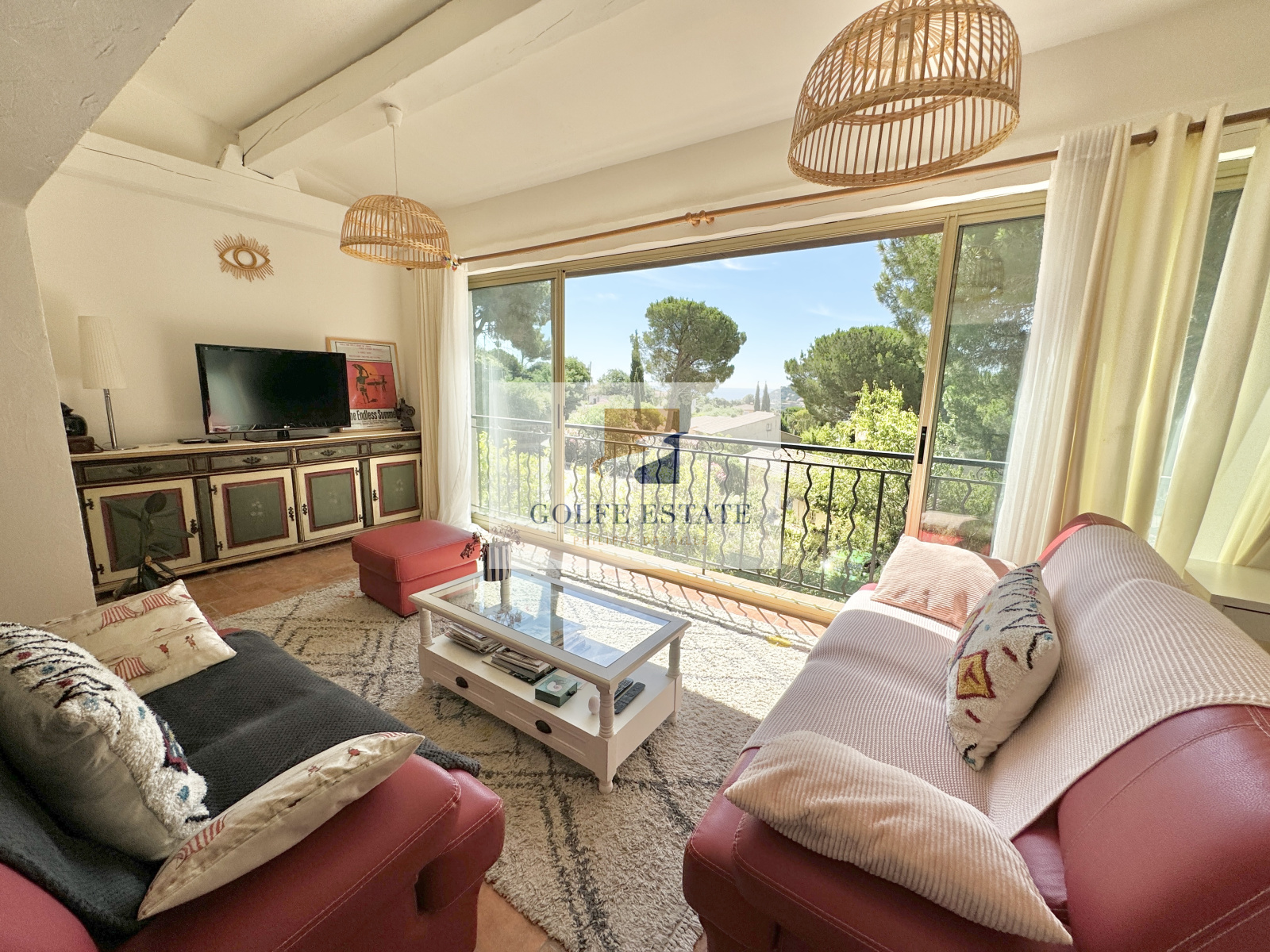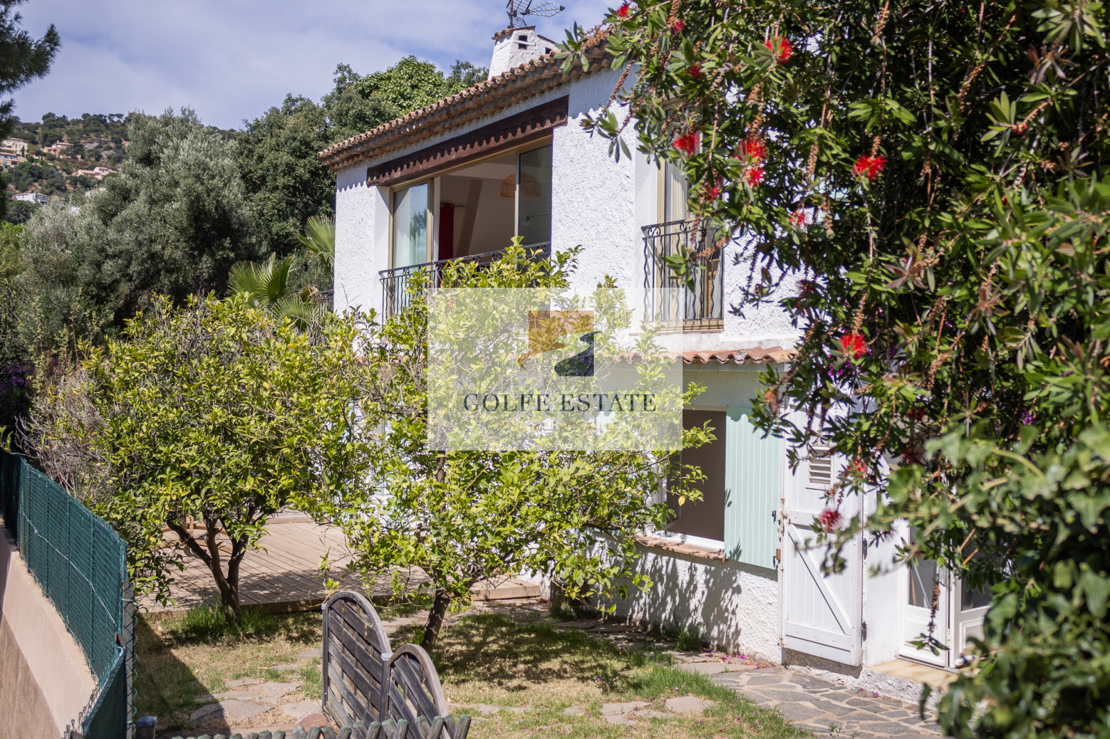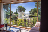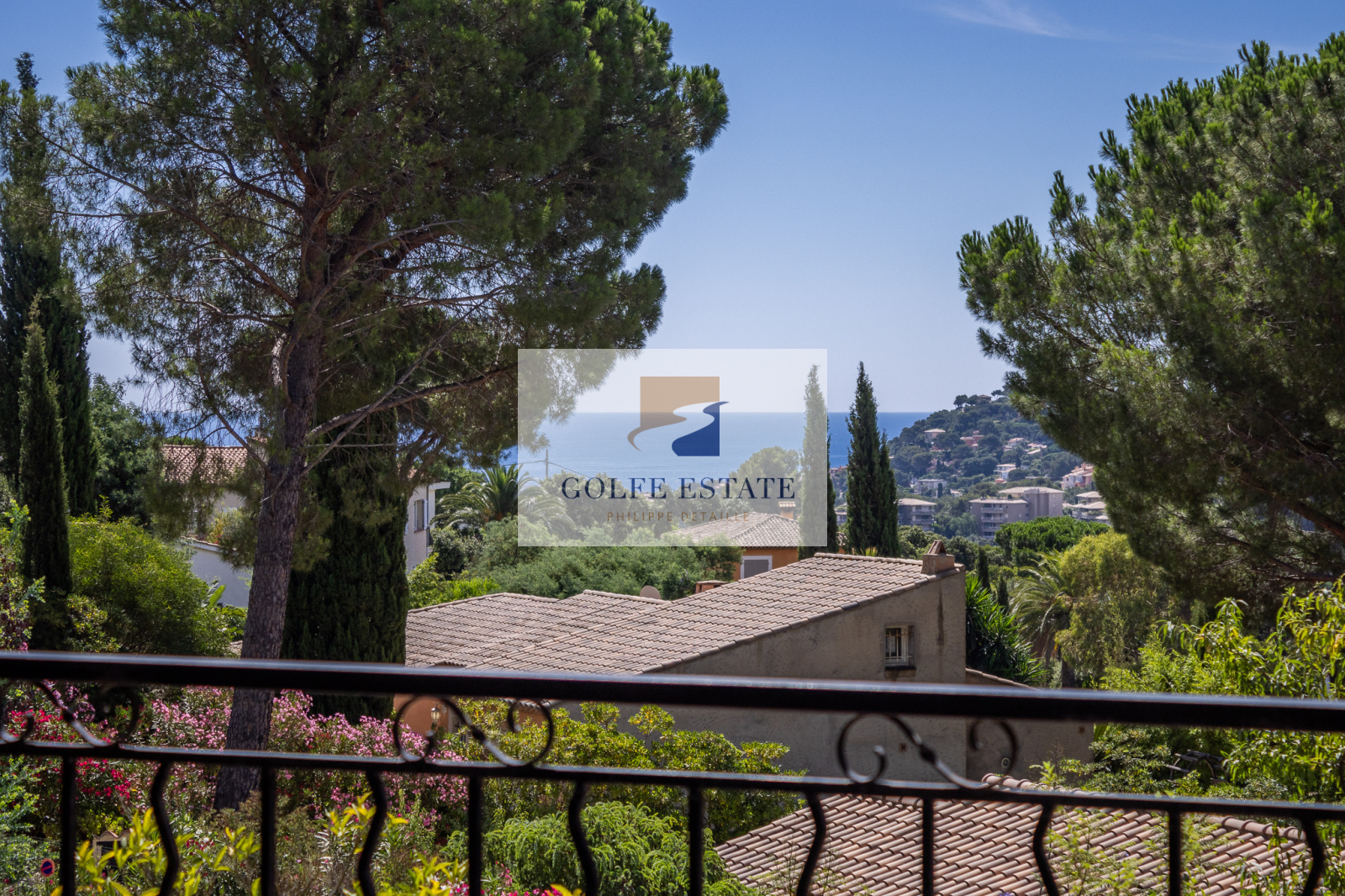 VENDUE - Dans un joli quartier résidentiel, cette maison sur deux niveaux avec piscine bénéficie d'une vue mer de la pièce principale.