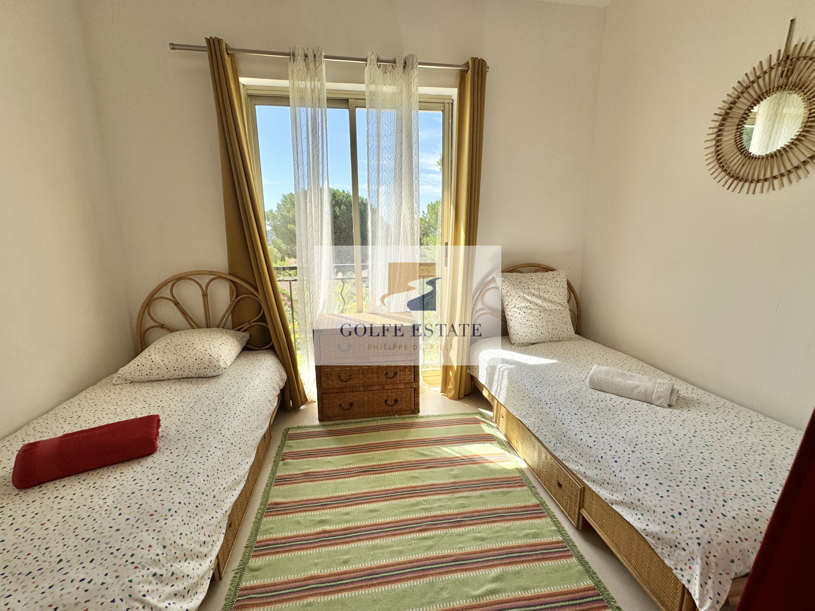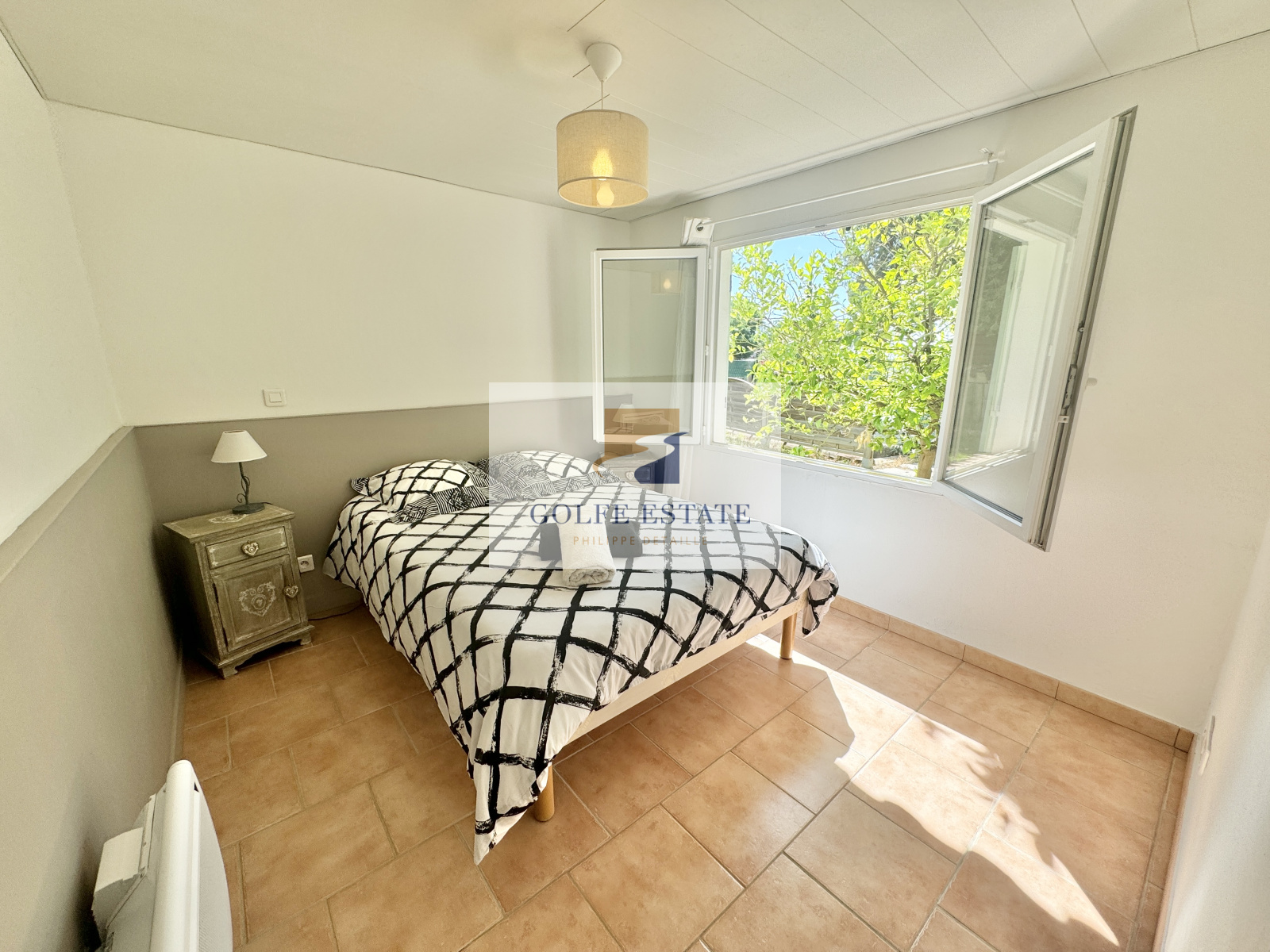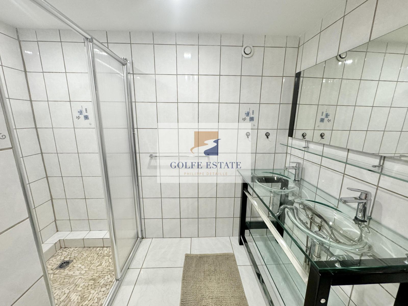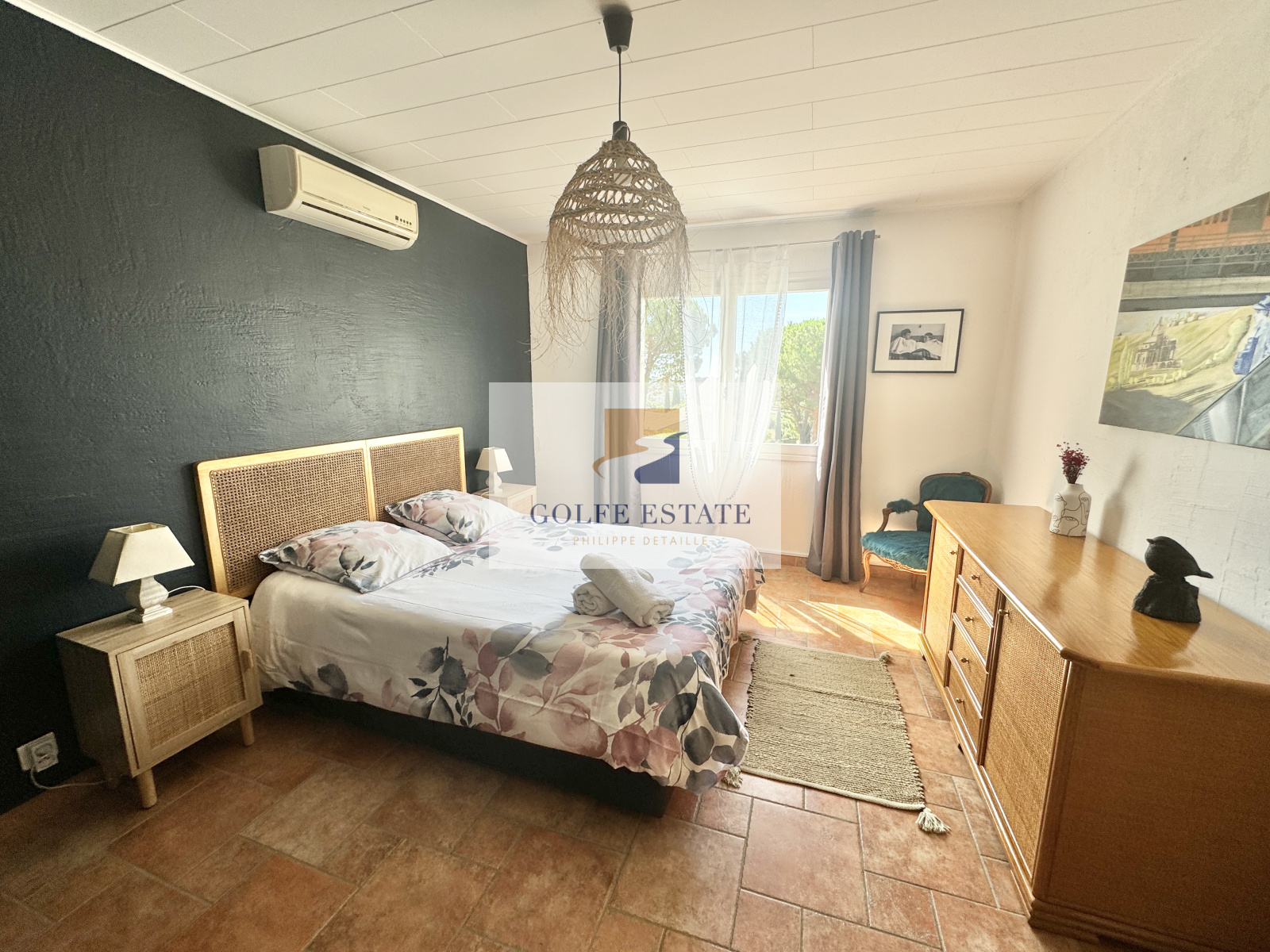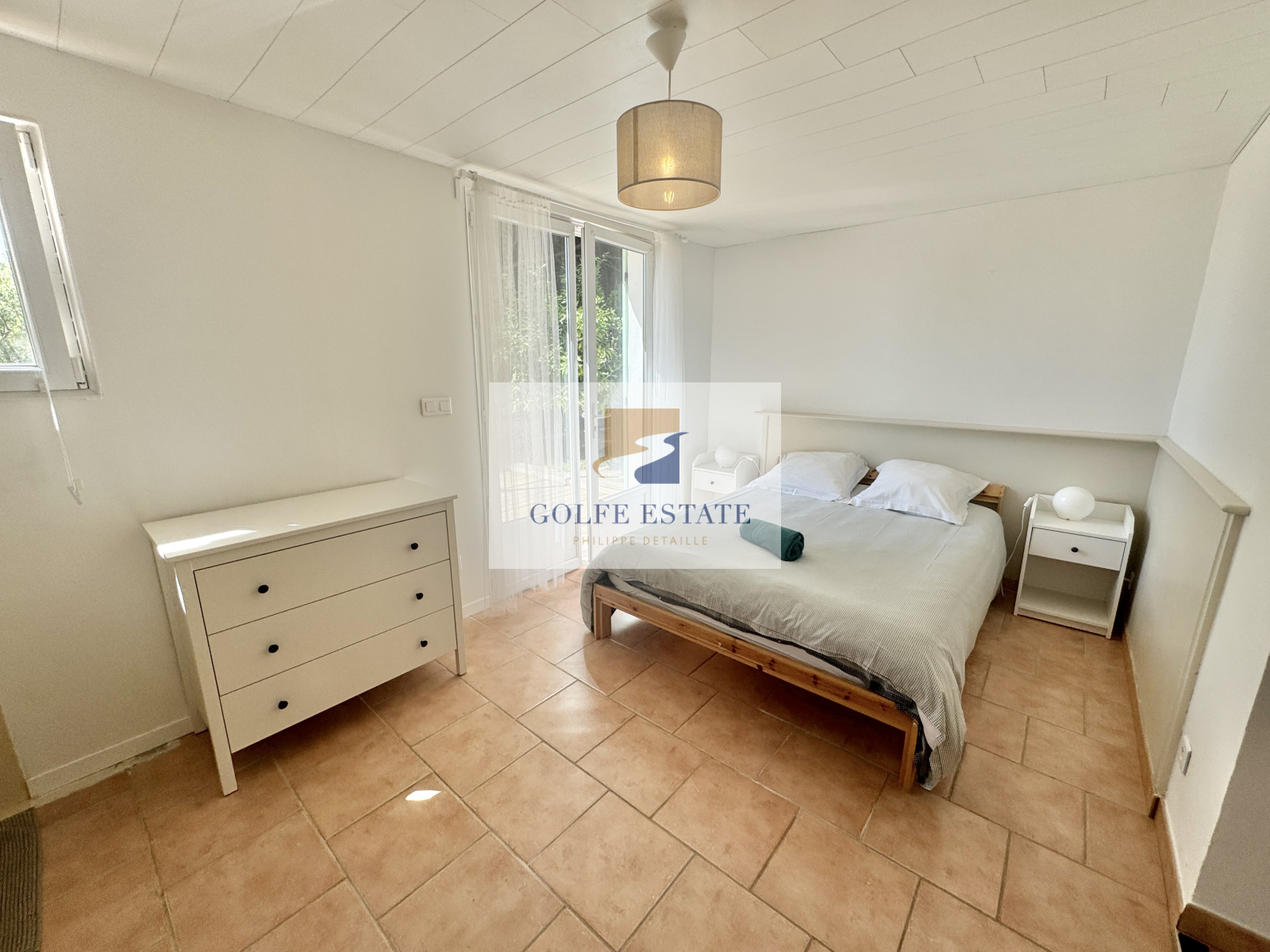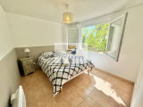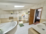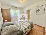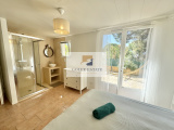 Villa composée en rez de chaussée d'un séjour / salle à manger et cuisine ouverte, 2 chambresse partageant une salle de bain compléte et wc, une chambre enfant et 1 salle de douche avec wc.
