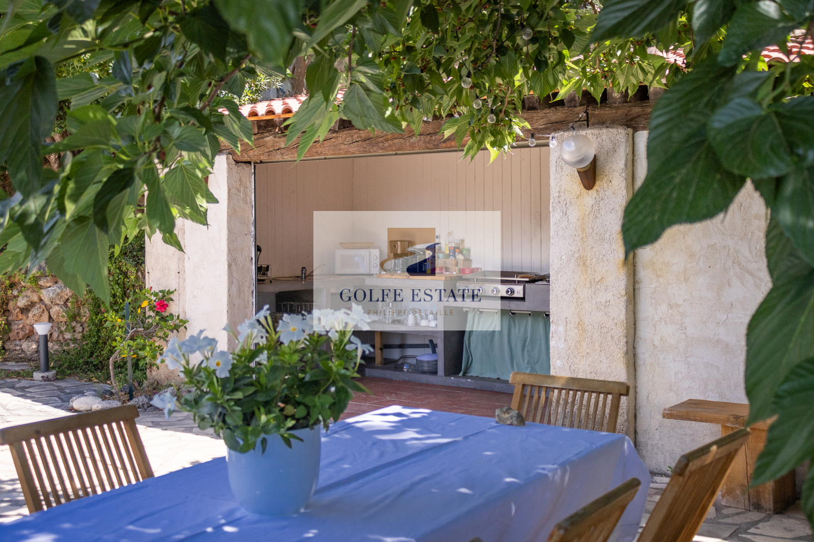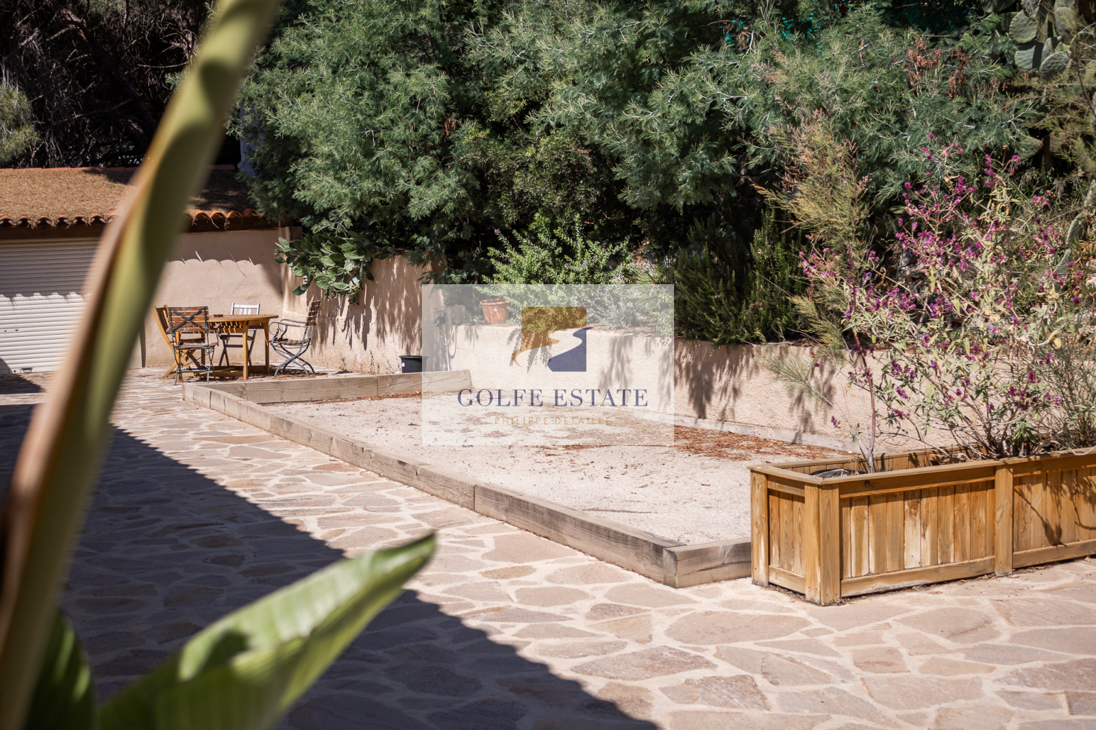 Jardin et abri voiture.
