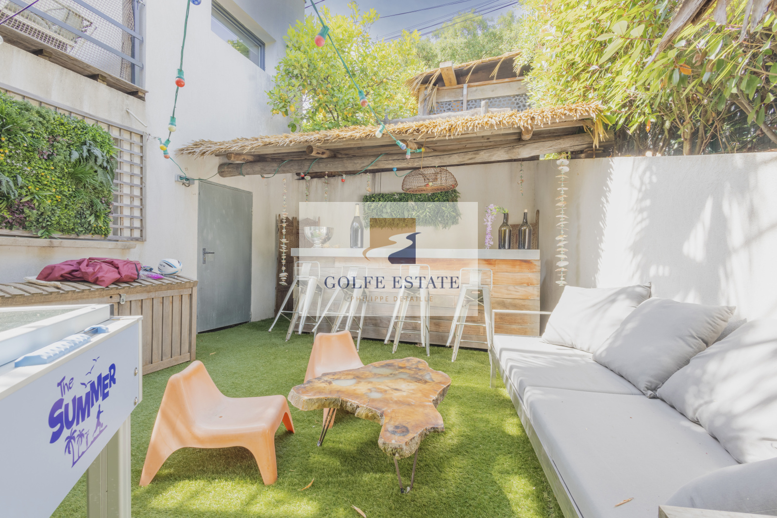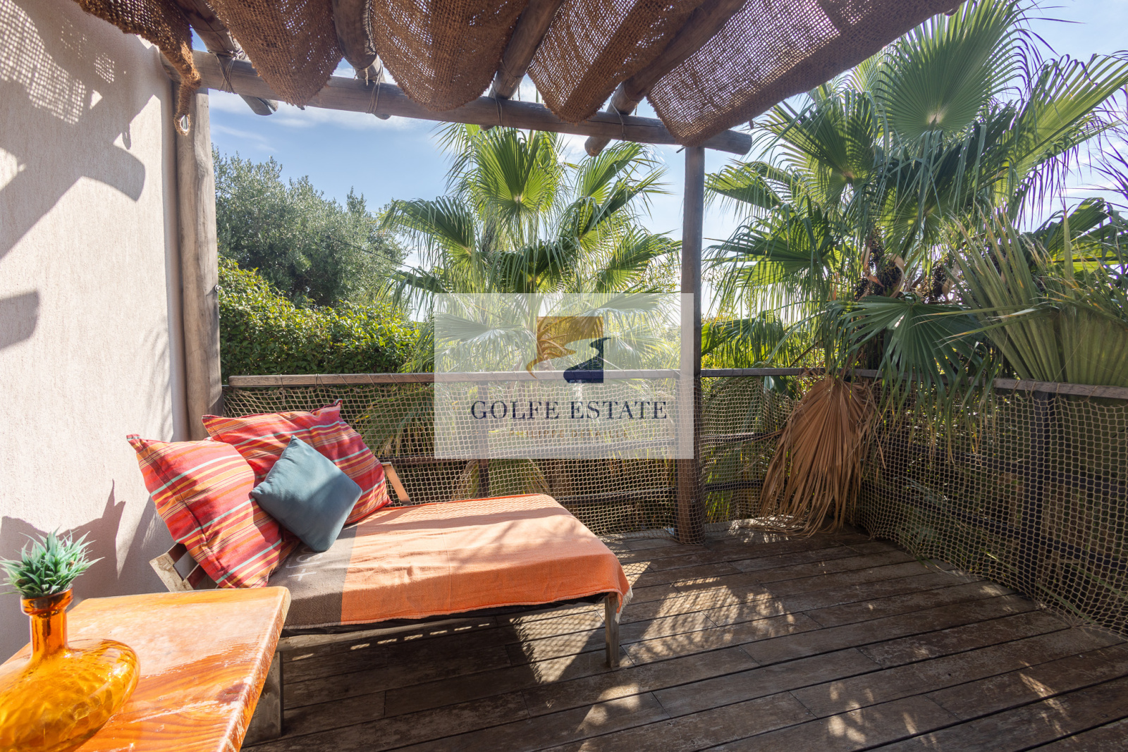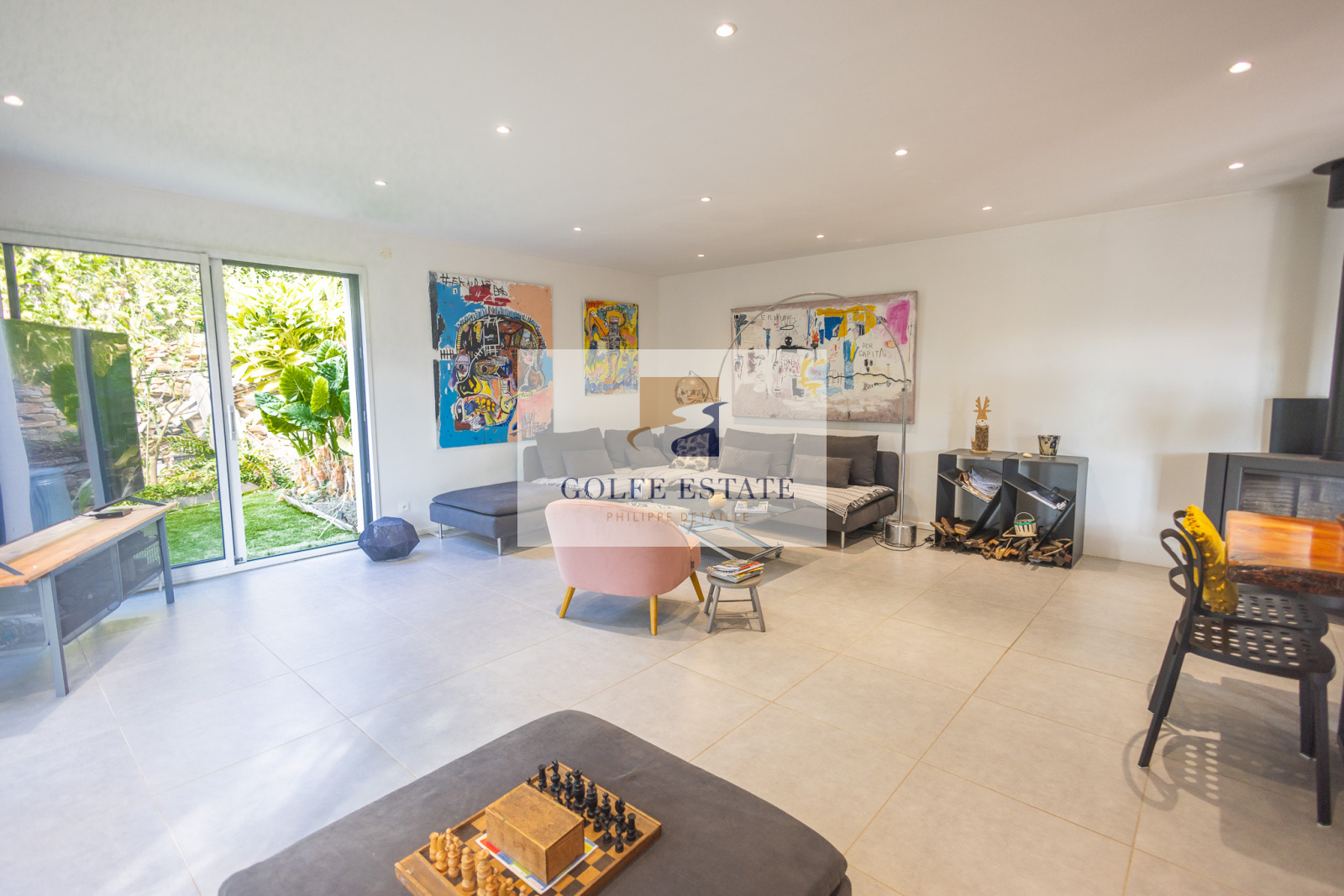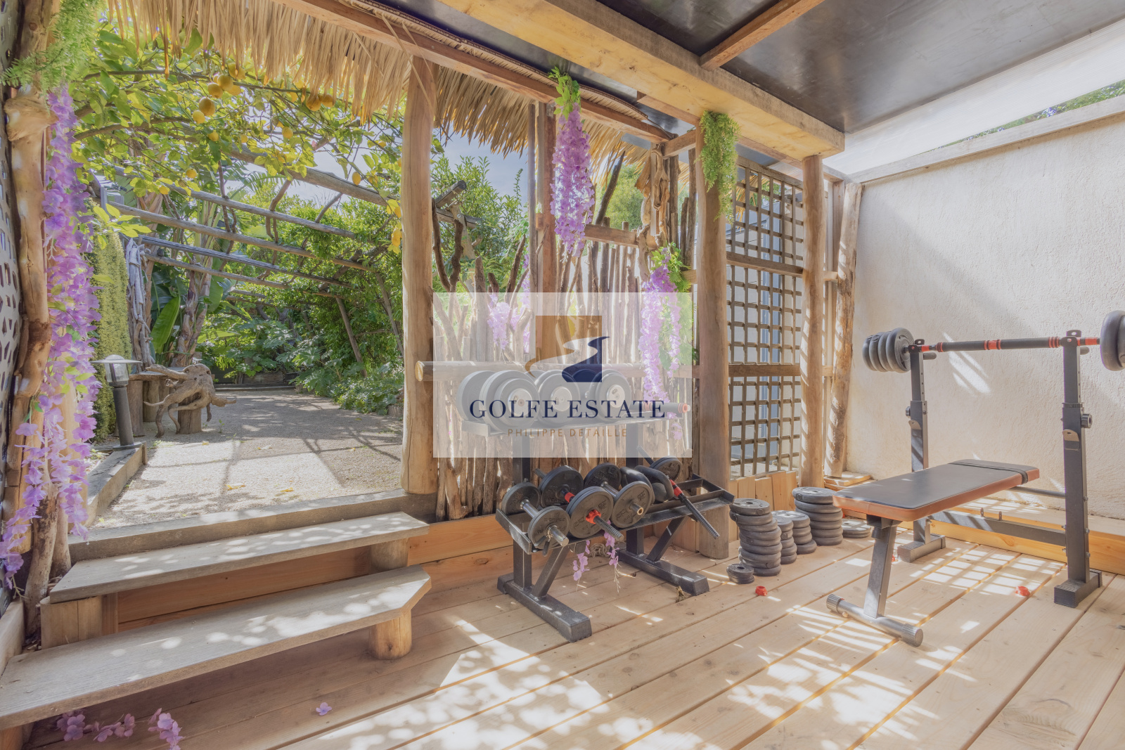 La maison principale de 4 chambres d'environ 140 m2, au confort d'une habitation à l'année est entourée d'un jardin luxuriant au parfum exotique et d'un cabanon perché d'environ 20 m2, isolée et climatisée.