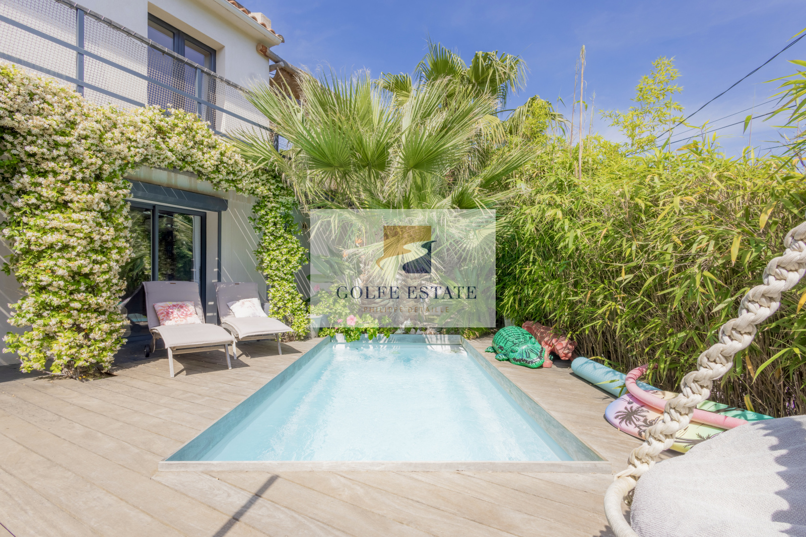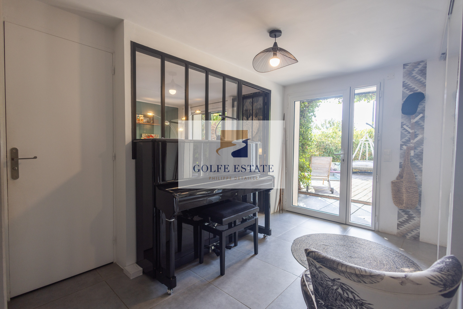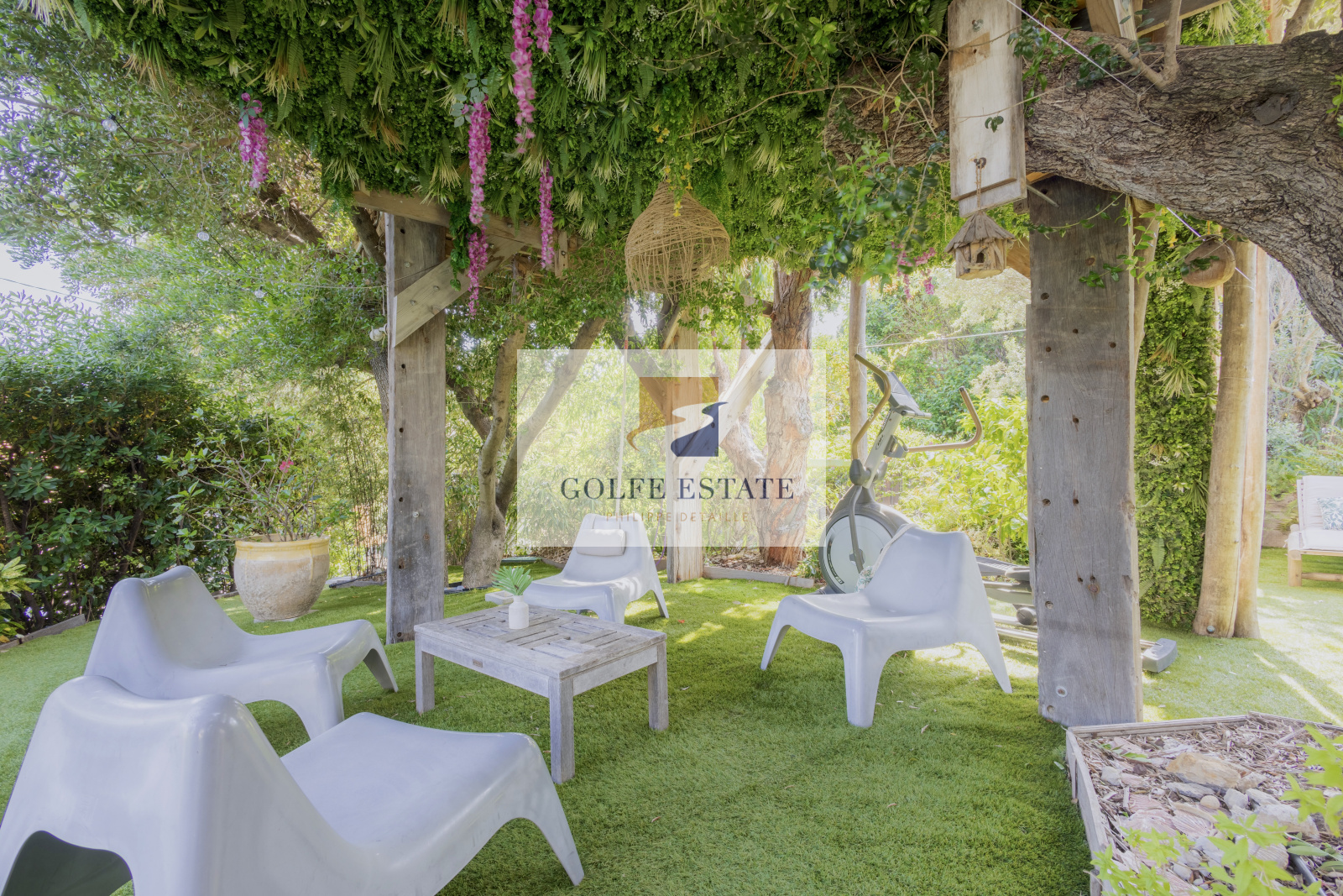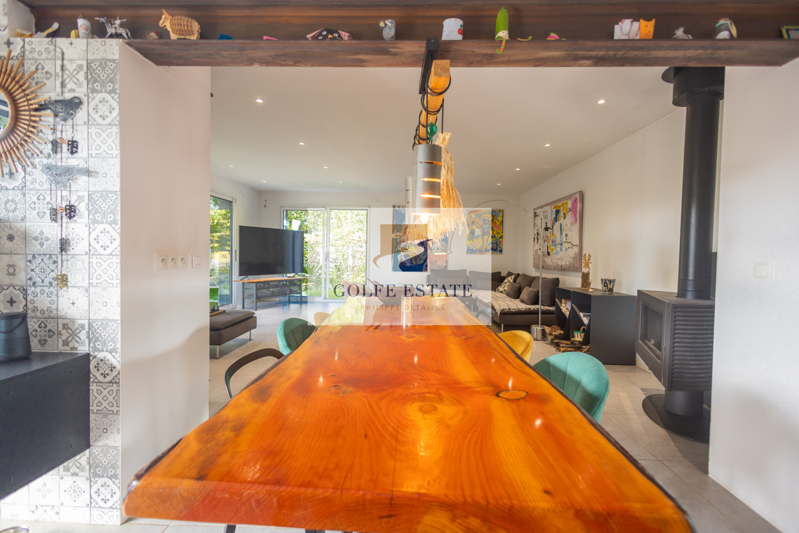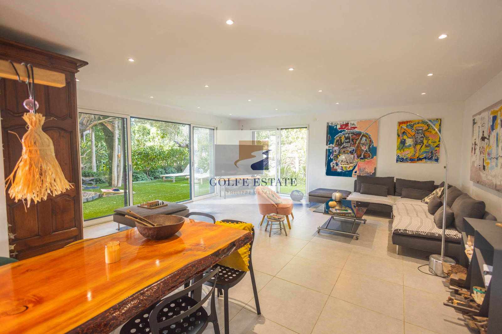 La maison principale de 4 chambres d'environ 140 m2, au confort d'une habitation à l'année est entourée d'un jardin luxuriant au parfum exotique et d'un cabanon perché d'environ 20 m2, isolée et climatisée.