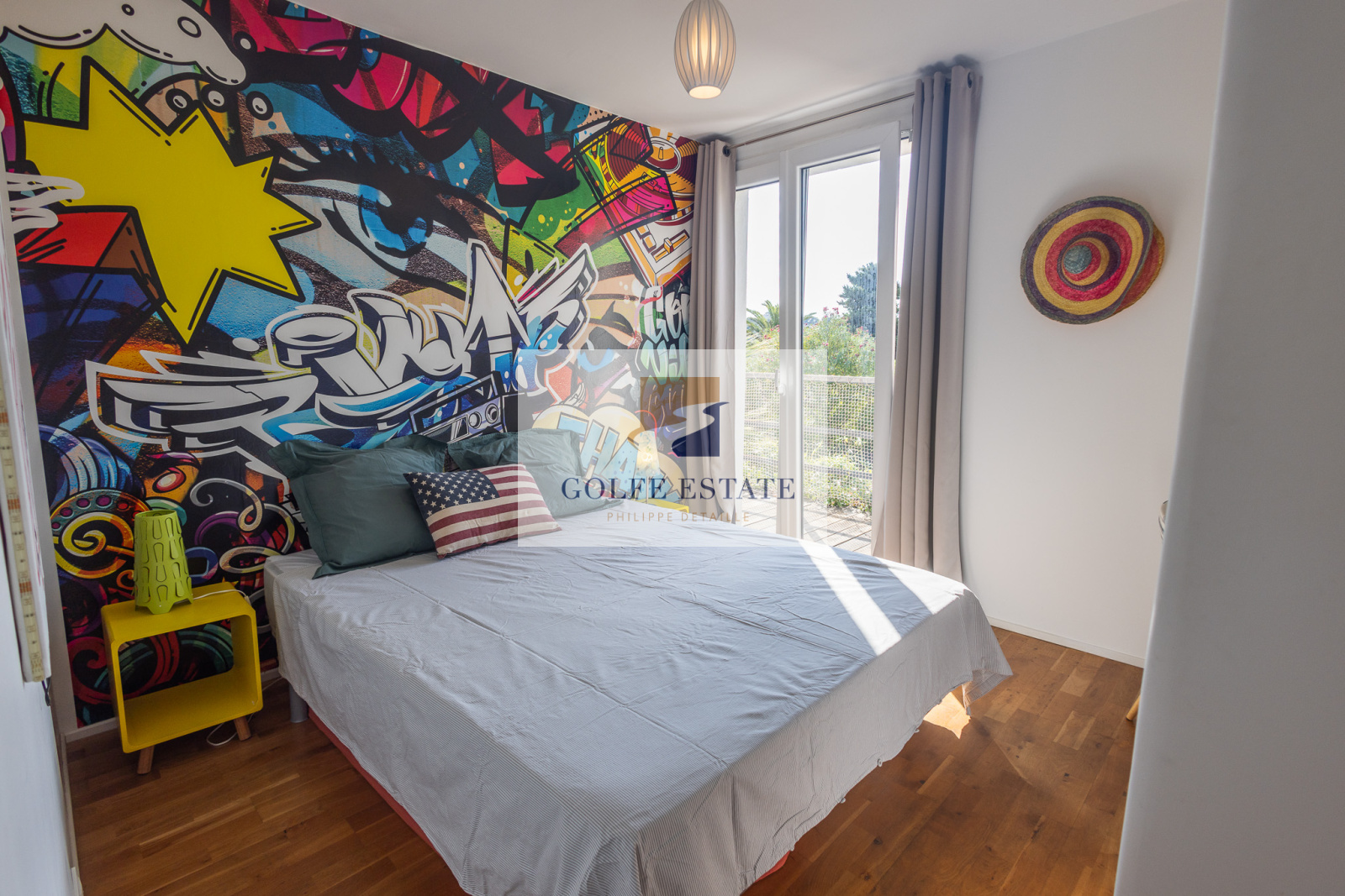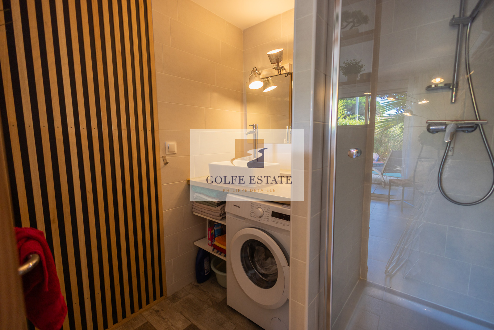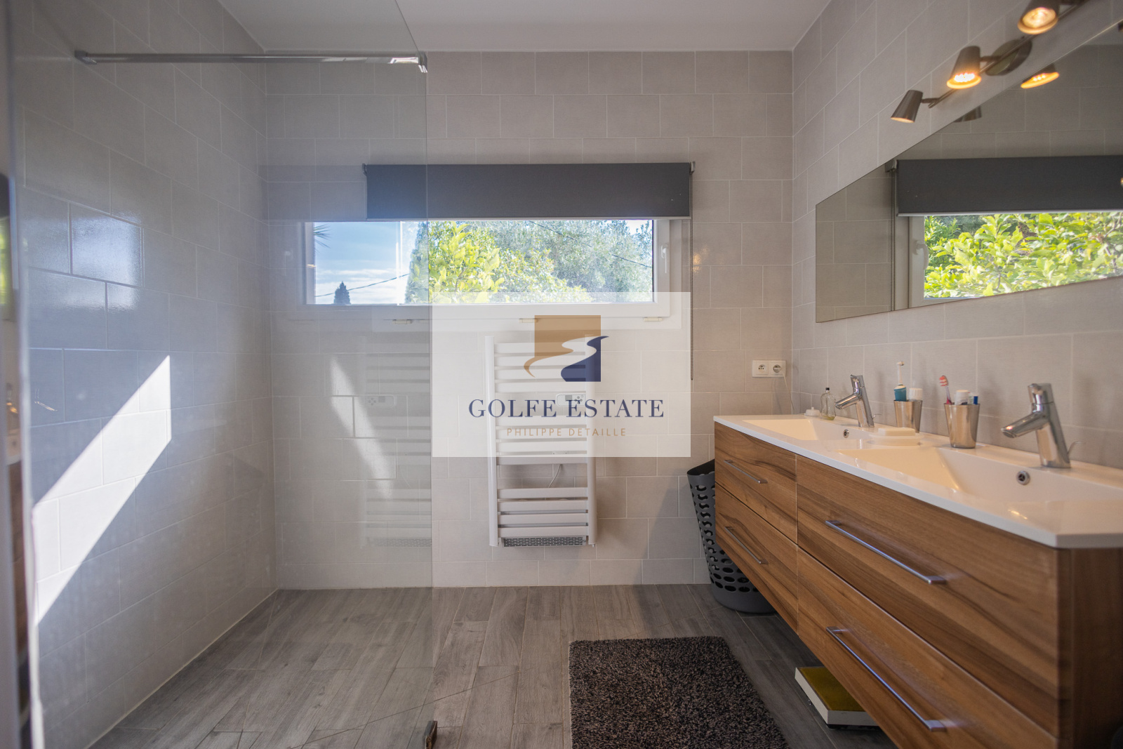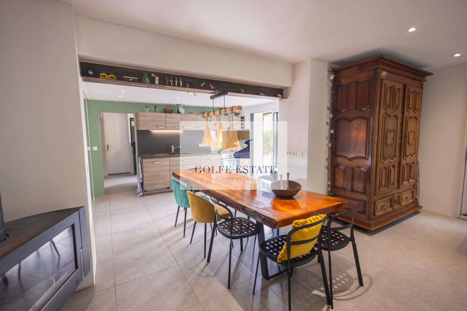 La maison principale de 4 chambres d'environ 140 m2, au confort d'une habitation à l'année est entourée d'un jardin luxuriant au parfum exotique et d'un cabanon perché d'environ 20 m2, isolée et climatisée.