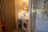 La maison principale se compose d'une entrée avec une chambre d'amis et sa salle d'eau, un WC indépendant, un séjour avec poêle donnant sur une cuisine ouverte. A l'étage, deux chambres, une salle d'eau, un WC séparé et une suite parentale viennent compléter l'agencement intérieur.