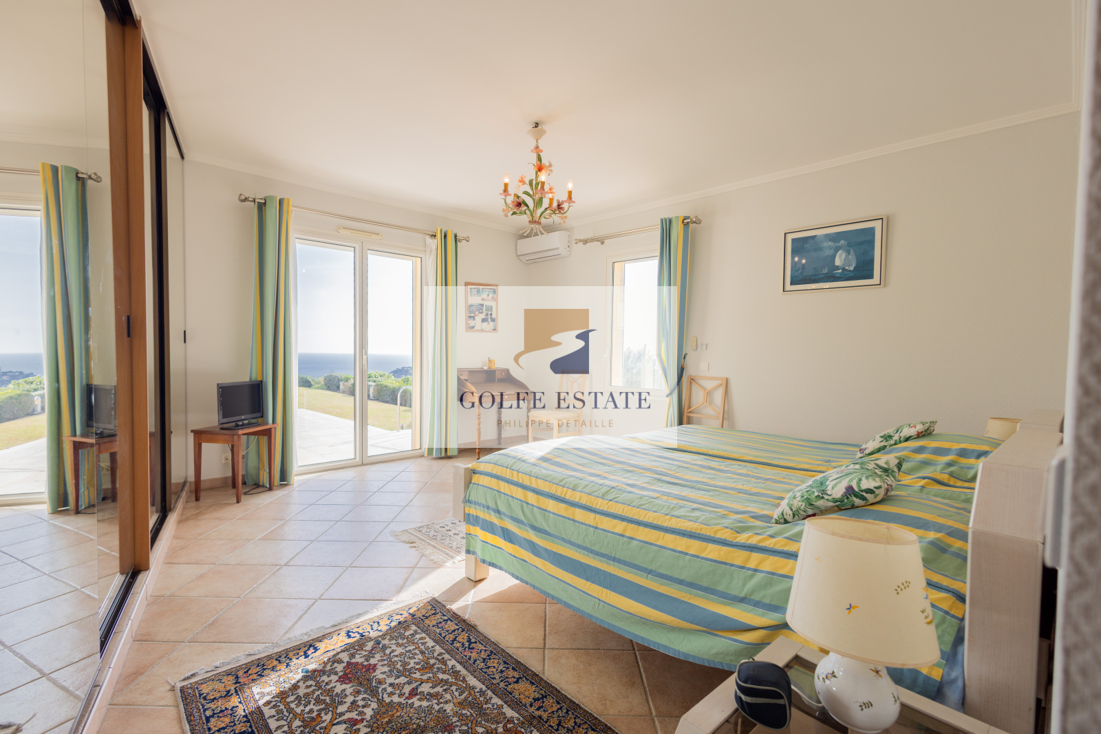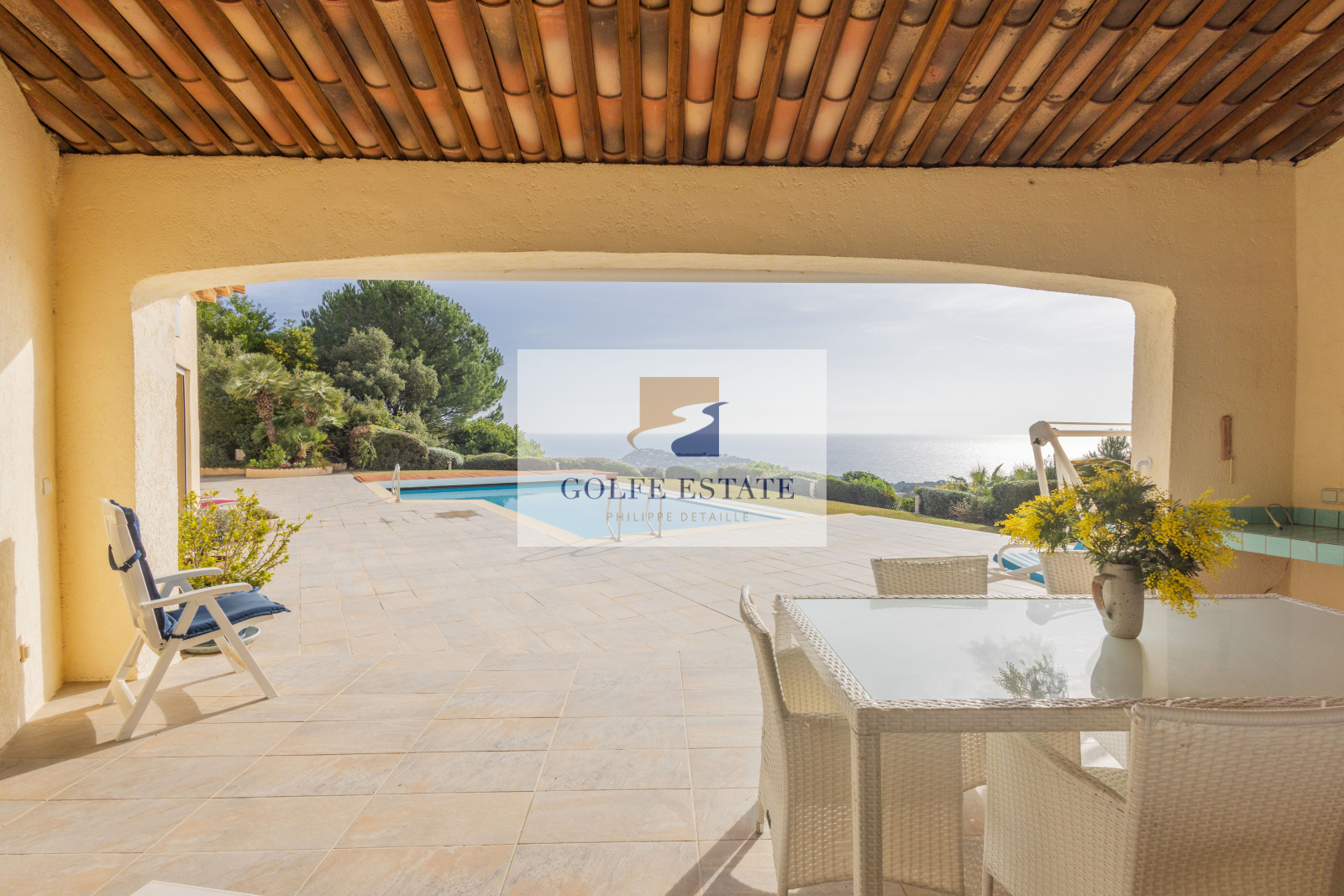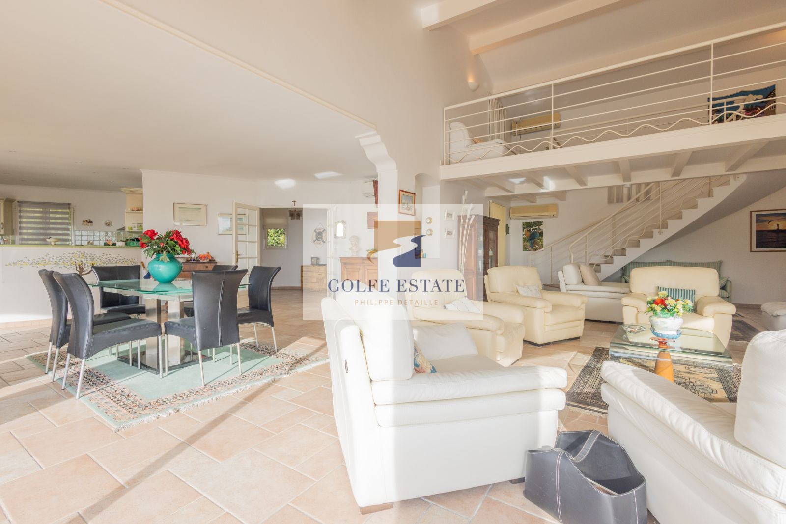 Située dans un quartier résidentiel au calme absolu, en bordure d'espace boisé classé, cette spacieuse villa de 350 m², édifiée sur un très beau terrain paysagé de plus de 2 000 m2 bénéficie d'une vue mer panoramique sur la baie de Cavalaire et les collines des Pradels.