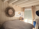 Elle se compose, au rez-de-chaussée, d’une entrée ouvrant sur un séjour avec cheminée à insert et accès à une terrasse couverte, d’une cuisine ouverte, d’une chambre en suite avec salle de bains et dressing, d’une buanderie ainsi que d’un WC invités.